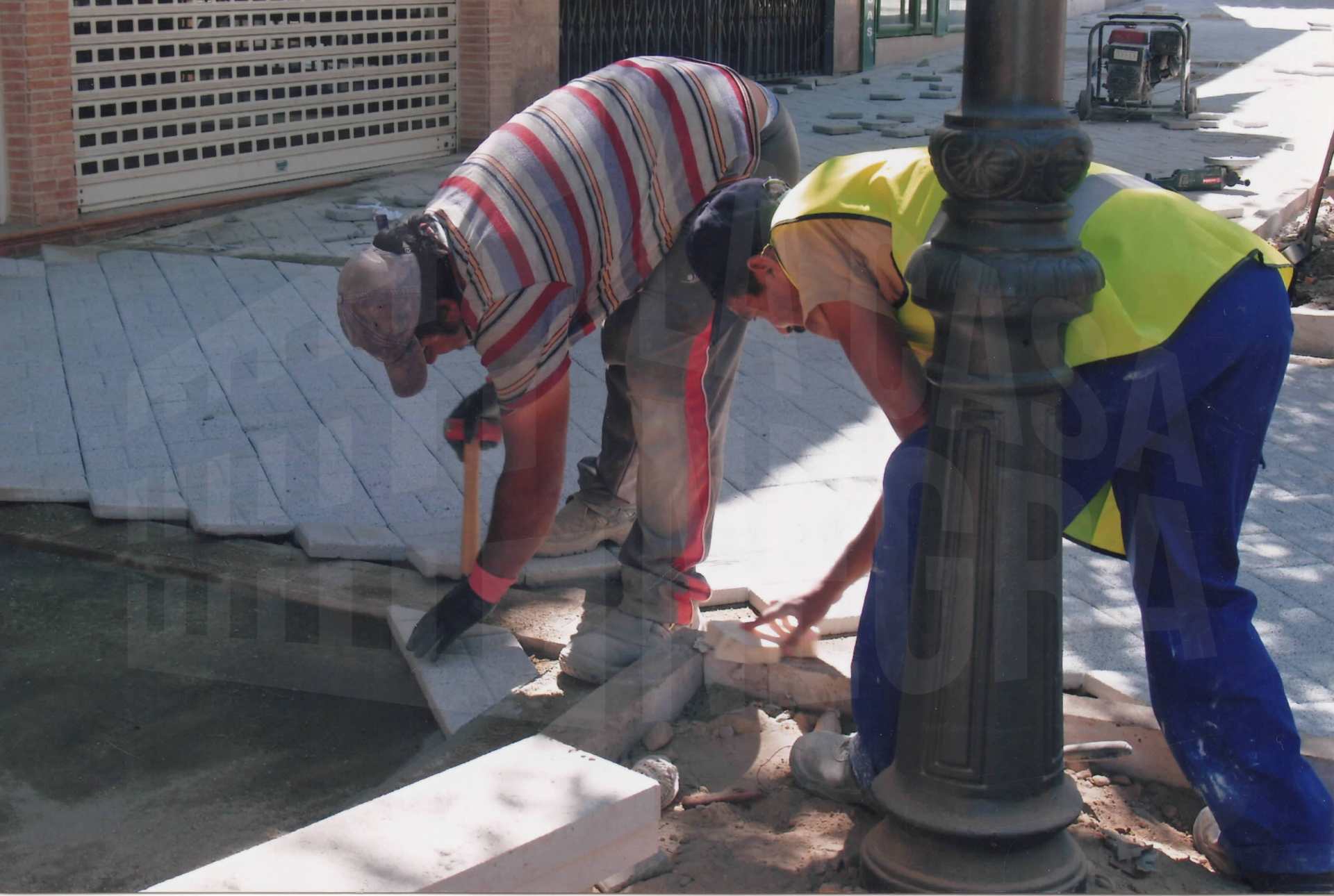 Alcorque con árboles protegidos por las obras de remodelacion de la calle Montesinos en Aranjuez