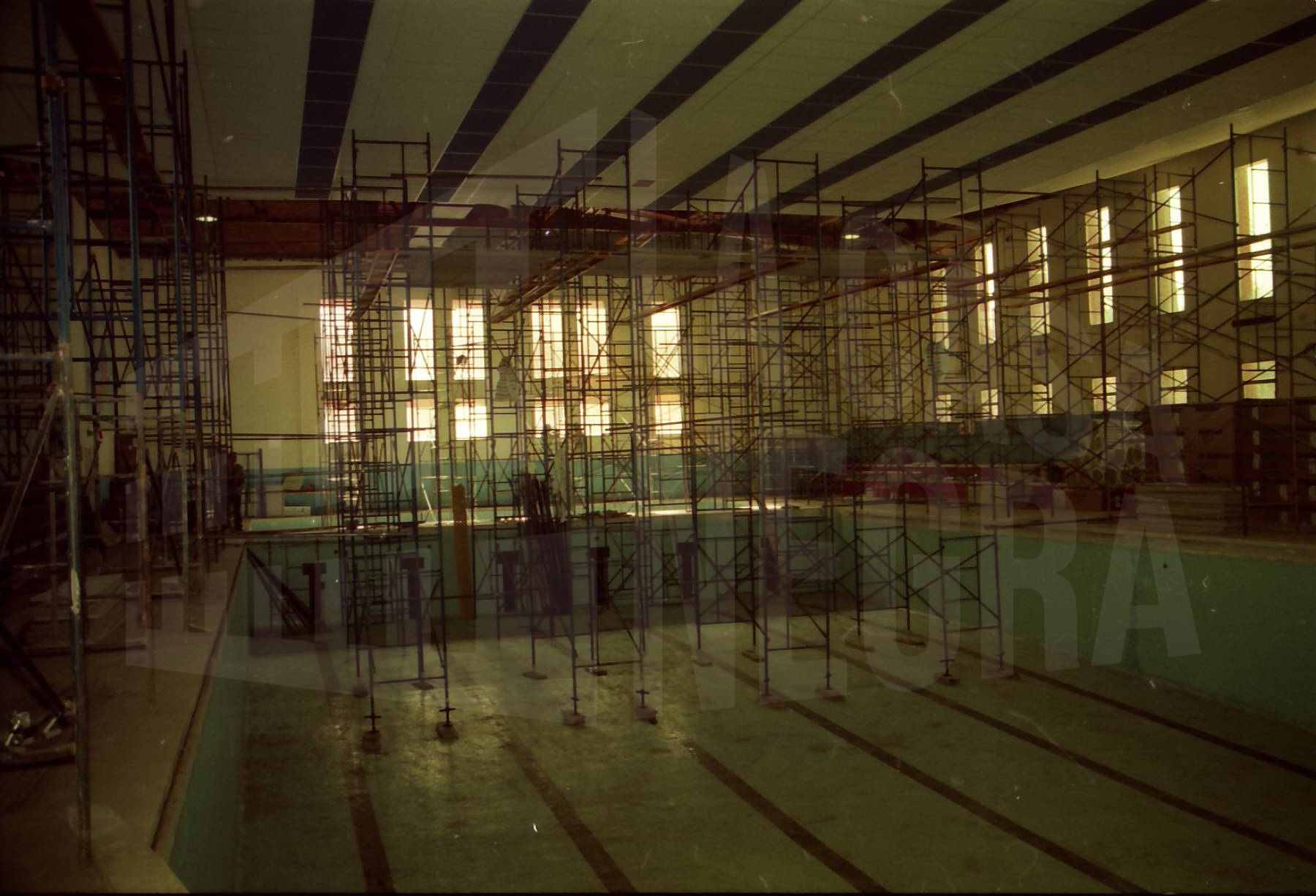 Andamios y obras en la Piscina Municipal cubierta de Aranjuez