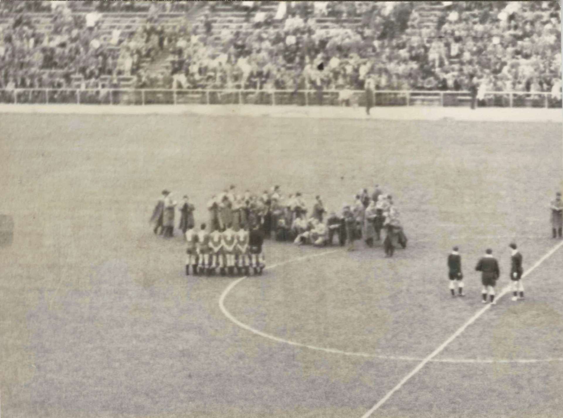 Sé el primero en valorar “Árbitros y jugadores de dos equipos de fútbol colocados en línea en el Estadio Santiago Bernabéu durante la actuación de una banda de música”