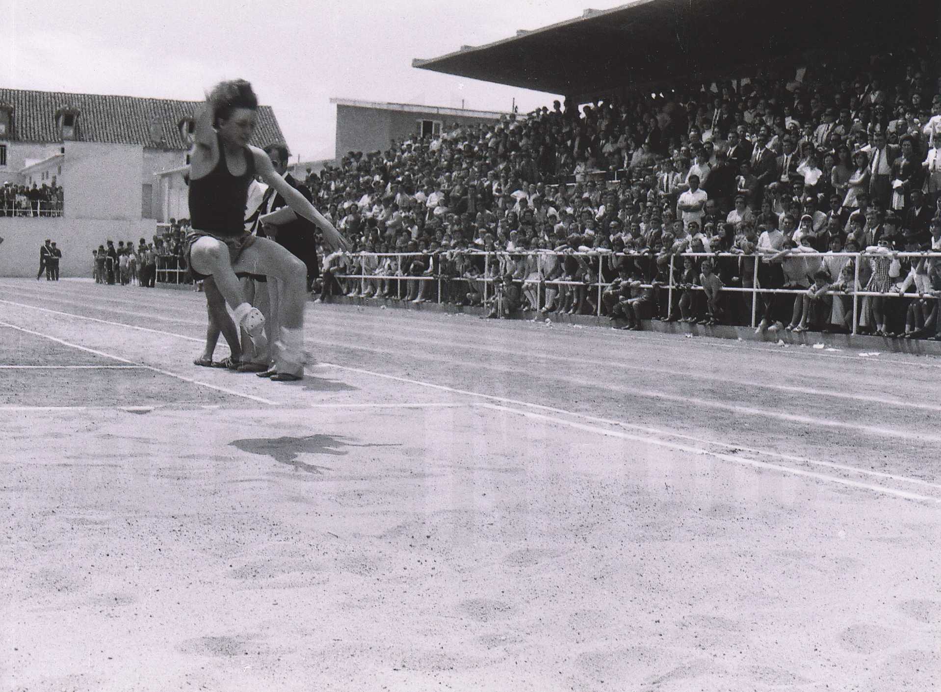 Atleta en salto de altura en el antiguo Campo Municipal de Deportes de Aranjuez