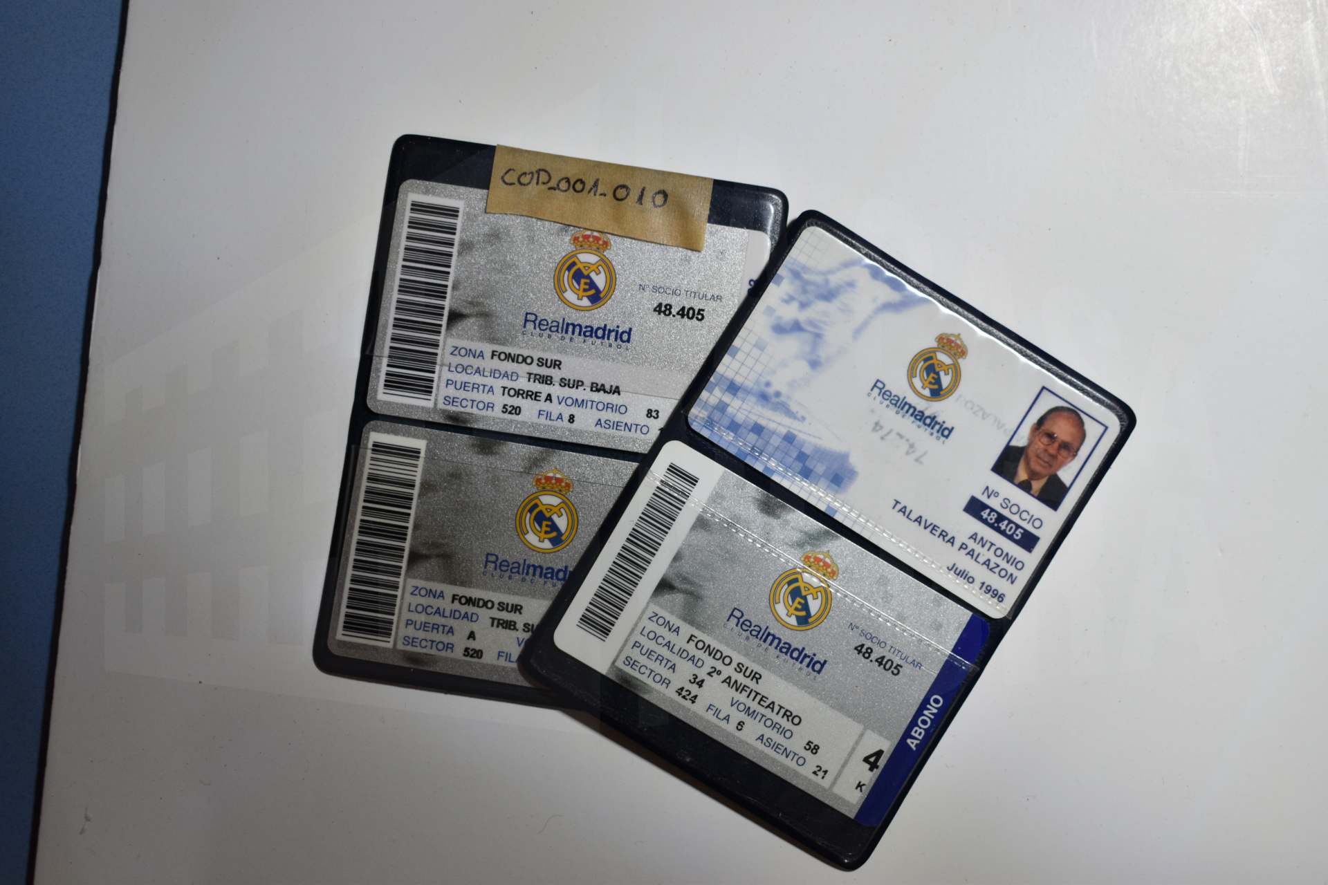 Carnet de socio número 74274 del Real Madrid, con su nombre y fotografía del año 1996