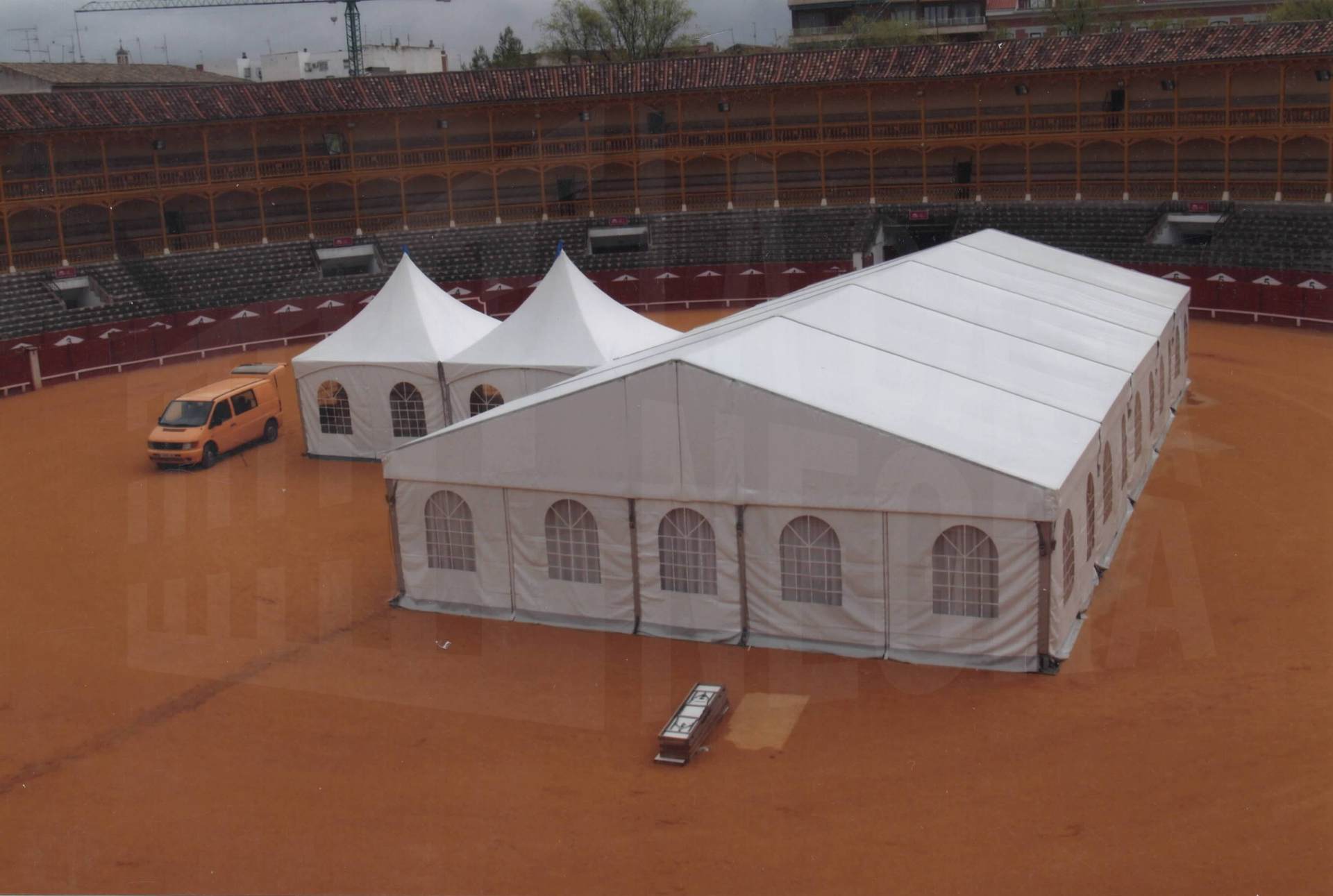 Carpas instaladas en la Plaza de Toros de Aranjuez