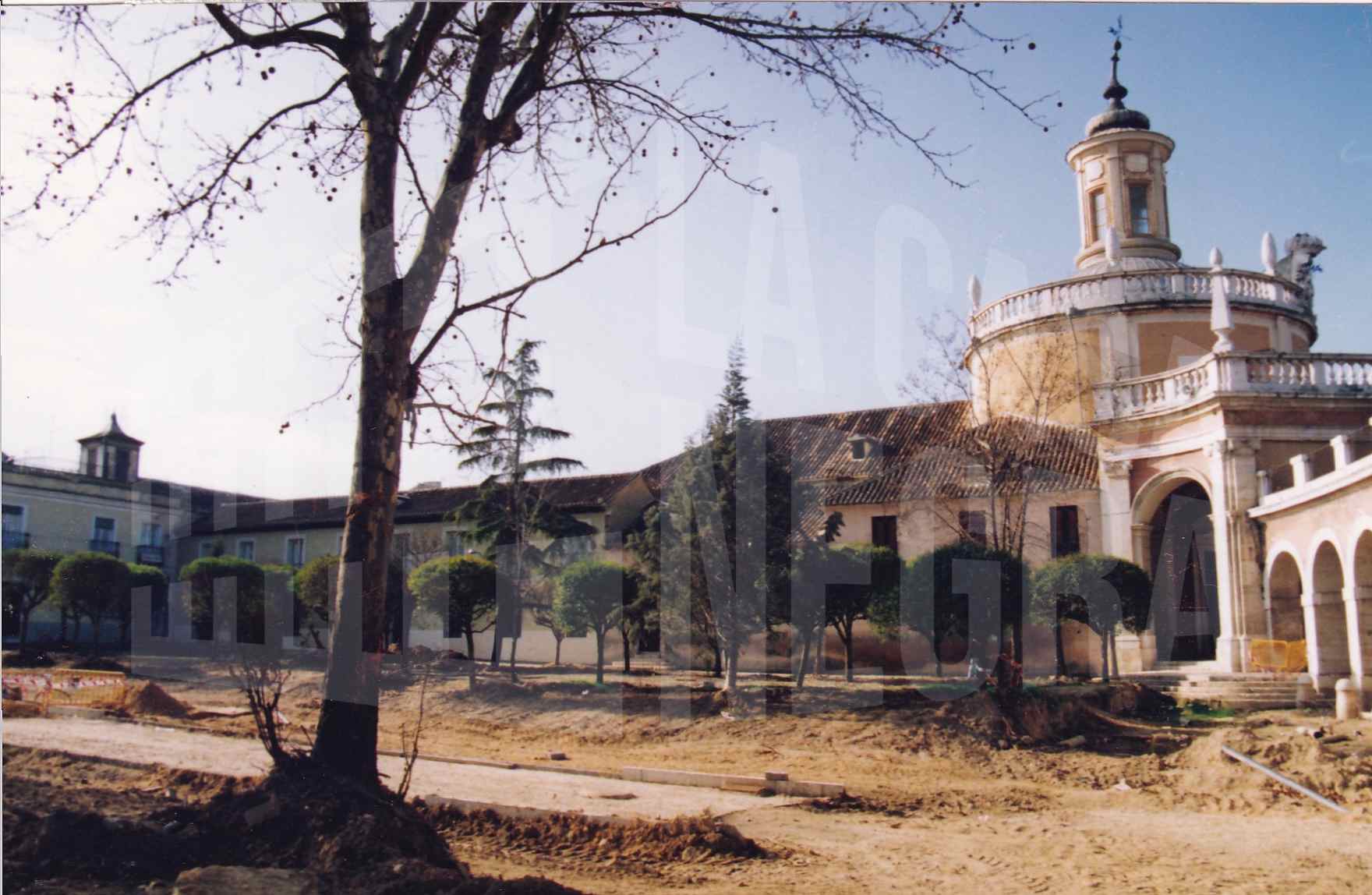 Carrera de Andalucía en obras junto a la Iglesia de San Antonio en Aranjuez
