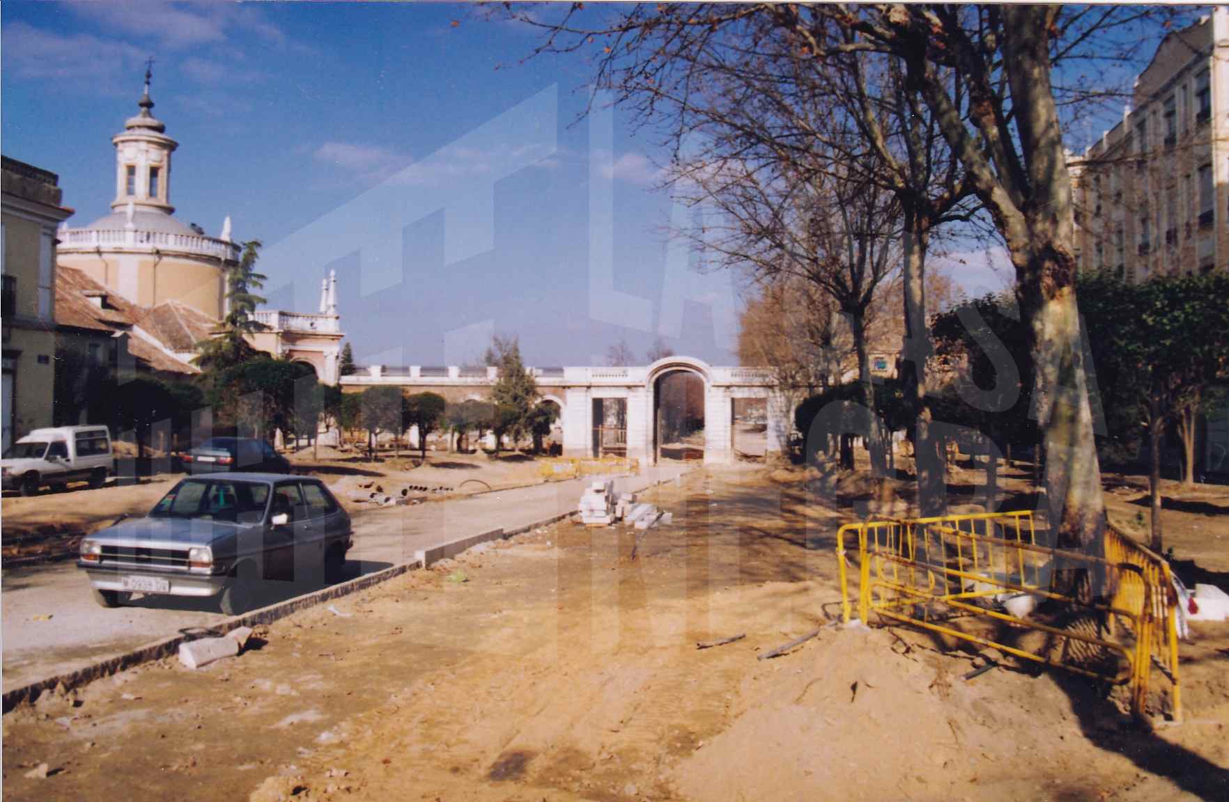 Carrera de Andalucía en obras junto a la Iglesia de San Antonio en Aranjuez