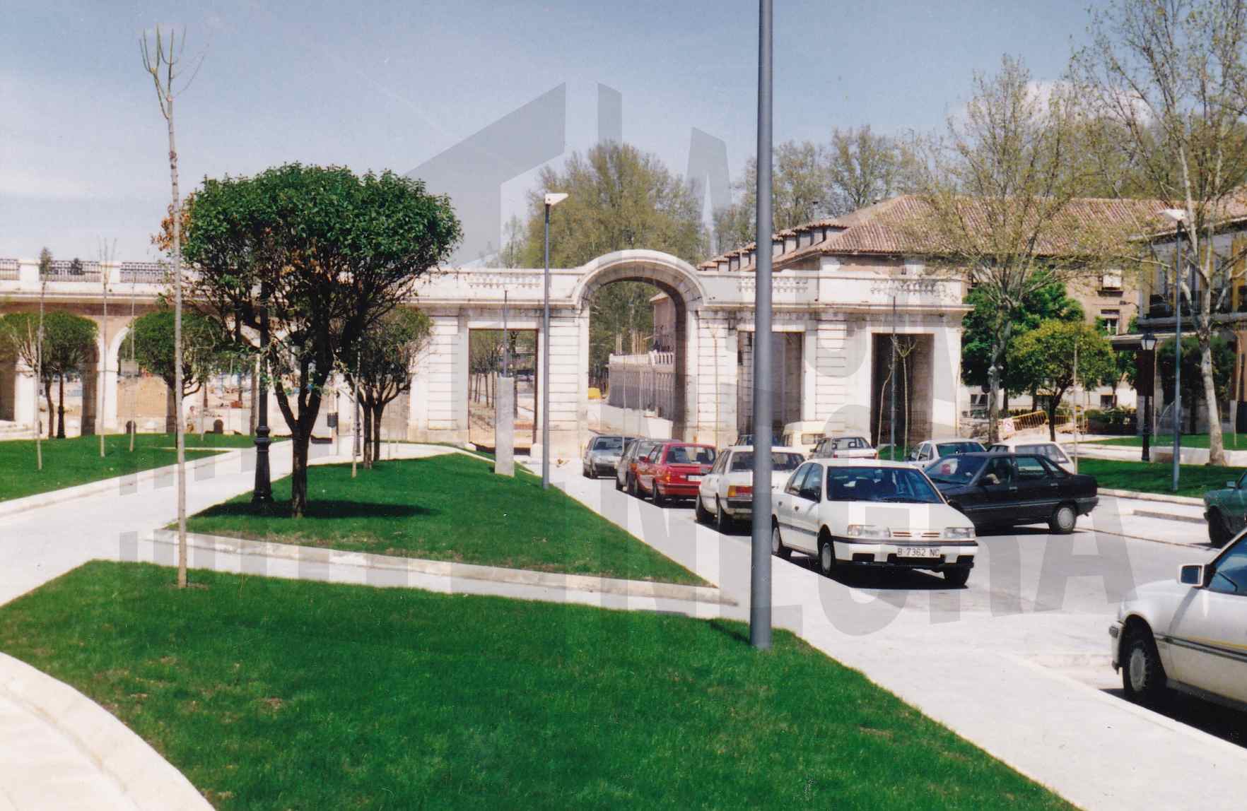 Carrera de Andalucía en obras junto a los arcos de la Calle San Antonio en Aranjuez