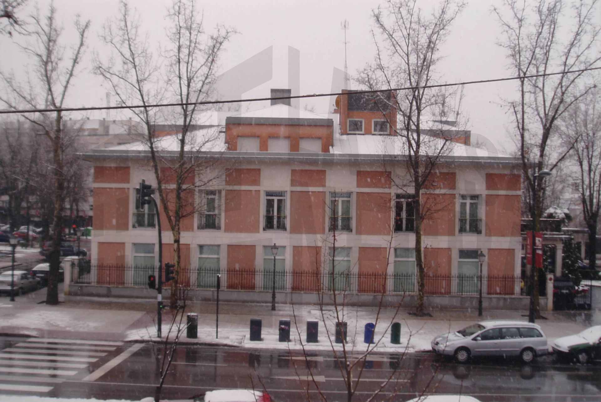 Colegio Sagrada Familia y alrededores en Aranjuez tras una nevada