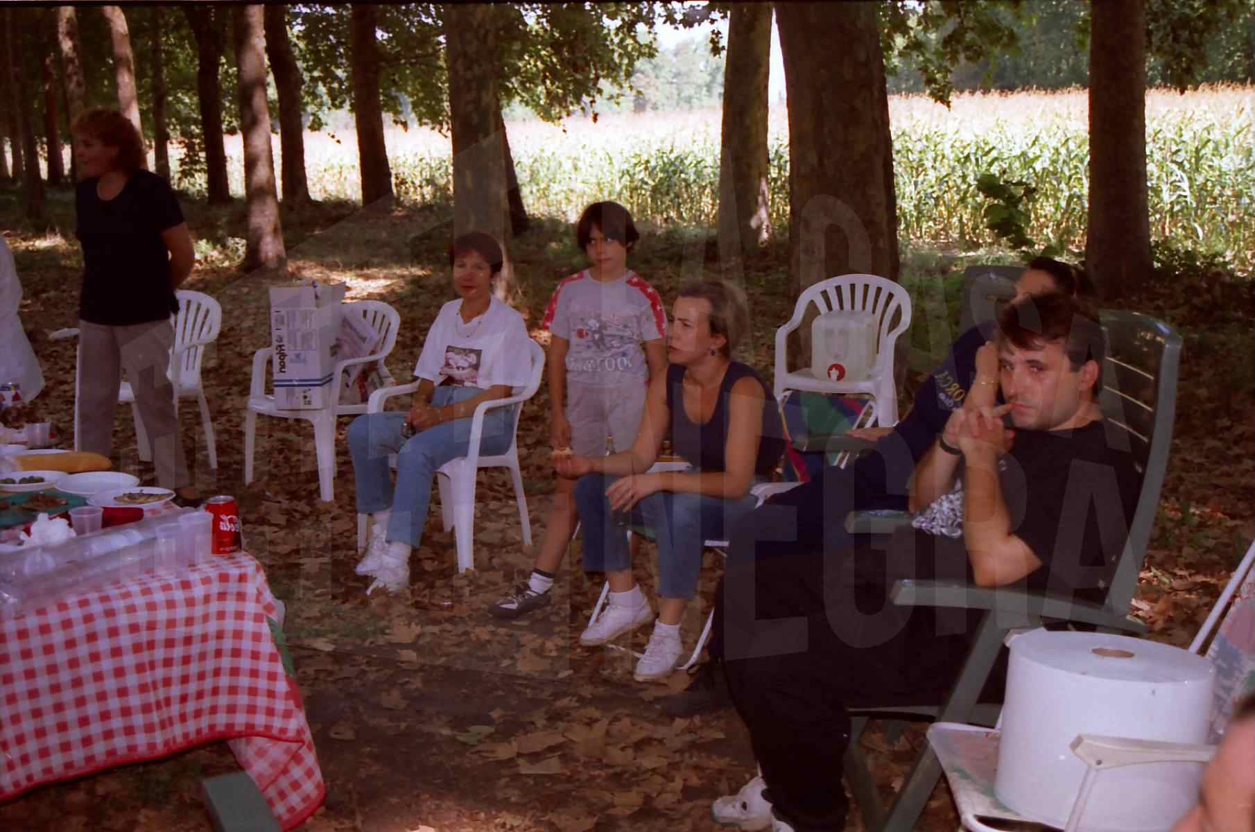 Colección de negativos que incluyen desde CN_001_036_001 al CN_001_036_006, celebración de una comida campestre del Club de natación de Aranjuez. Comida en el campo 12 calles club 1997