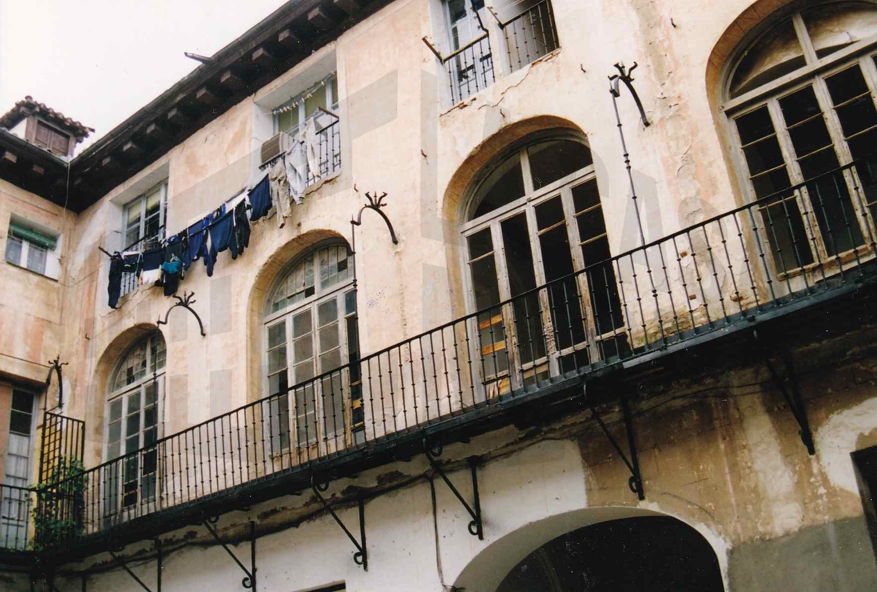 Corredor y fachada interior de la corrala de la Casa Carmena en la Calle Capitán en Aranjuez