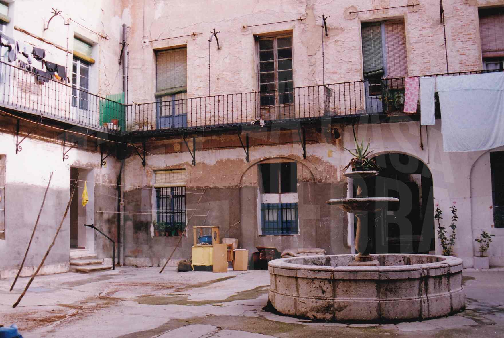 Corredor y fuente en el patio de la corrala de la Casa Carmena en la Calle Capitán en Aranjuez