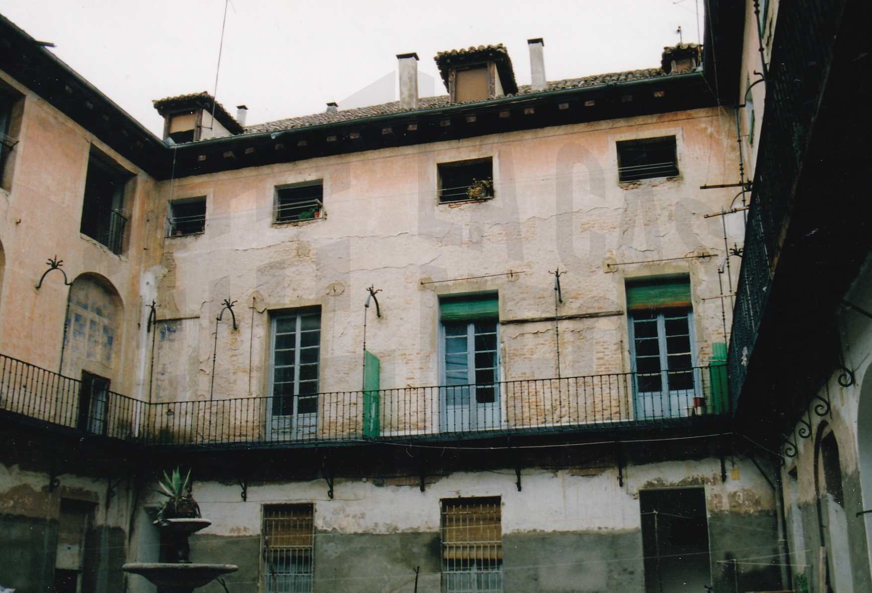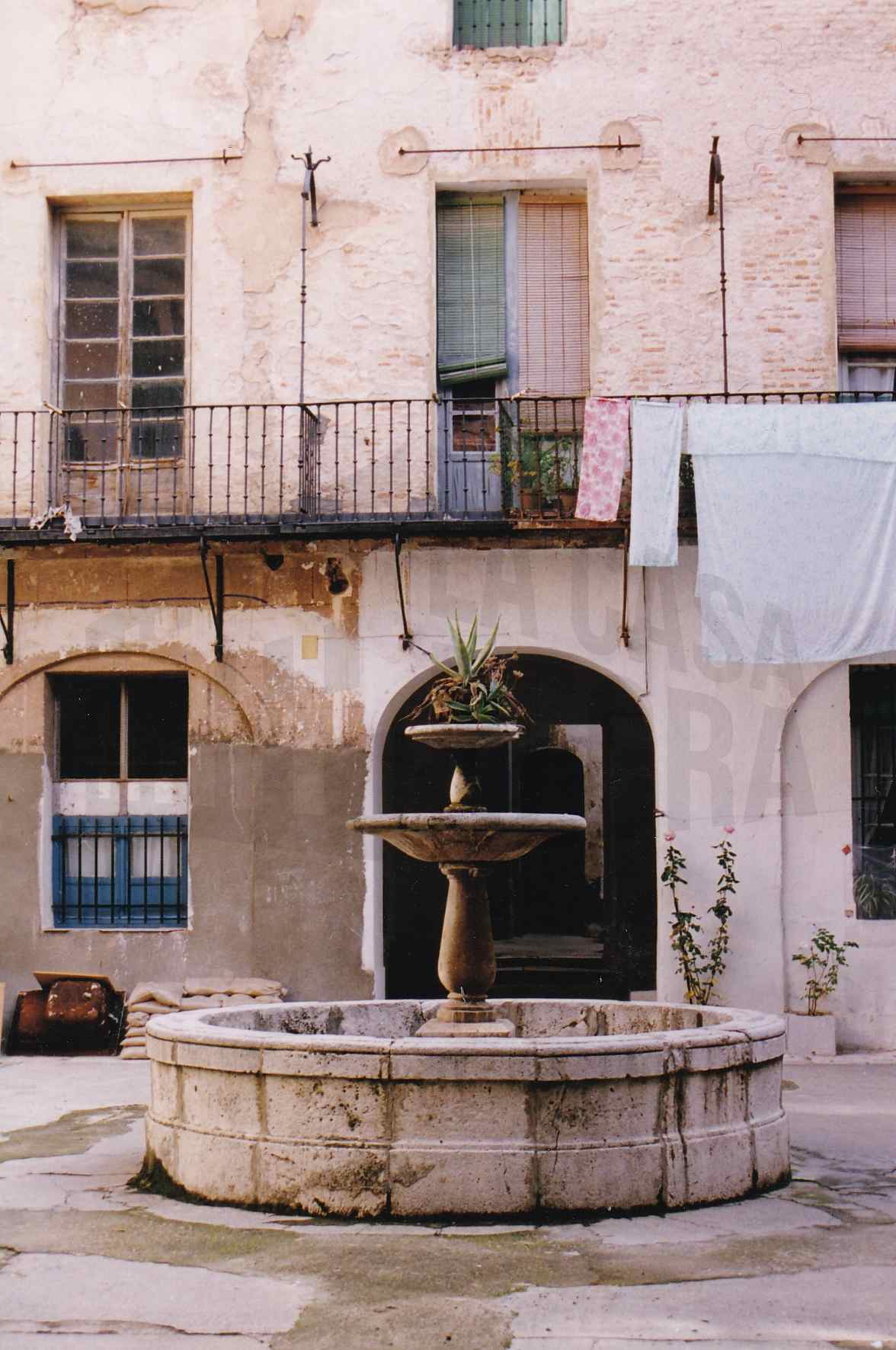 Corredor y fuente en el patio de la corrala de la Casa Carmena en la Calle Capitán en Aranjuez