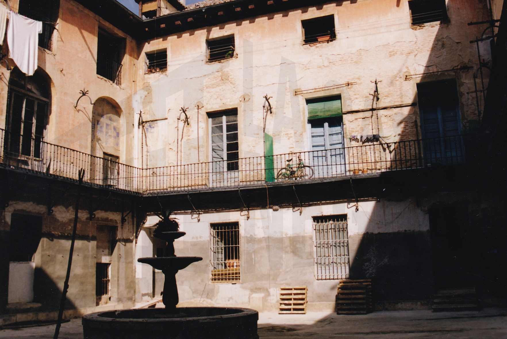Corredor y fuente en el patio de la corrala de la Casa Carmena en la Calle Capitán en Aranjuez
