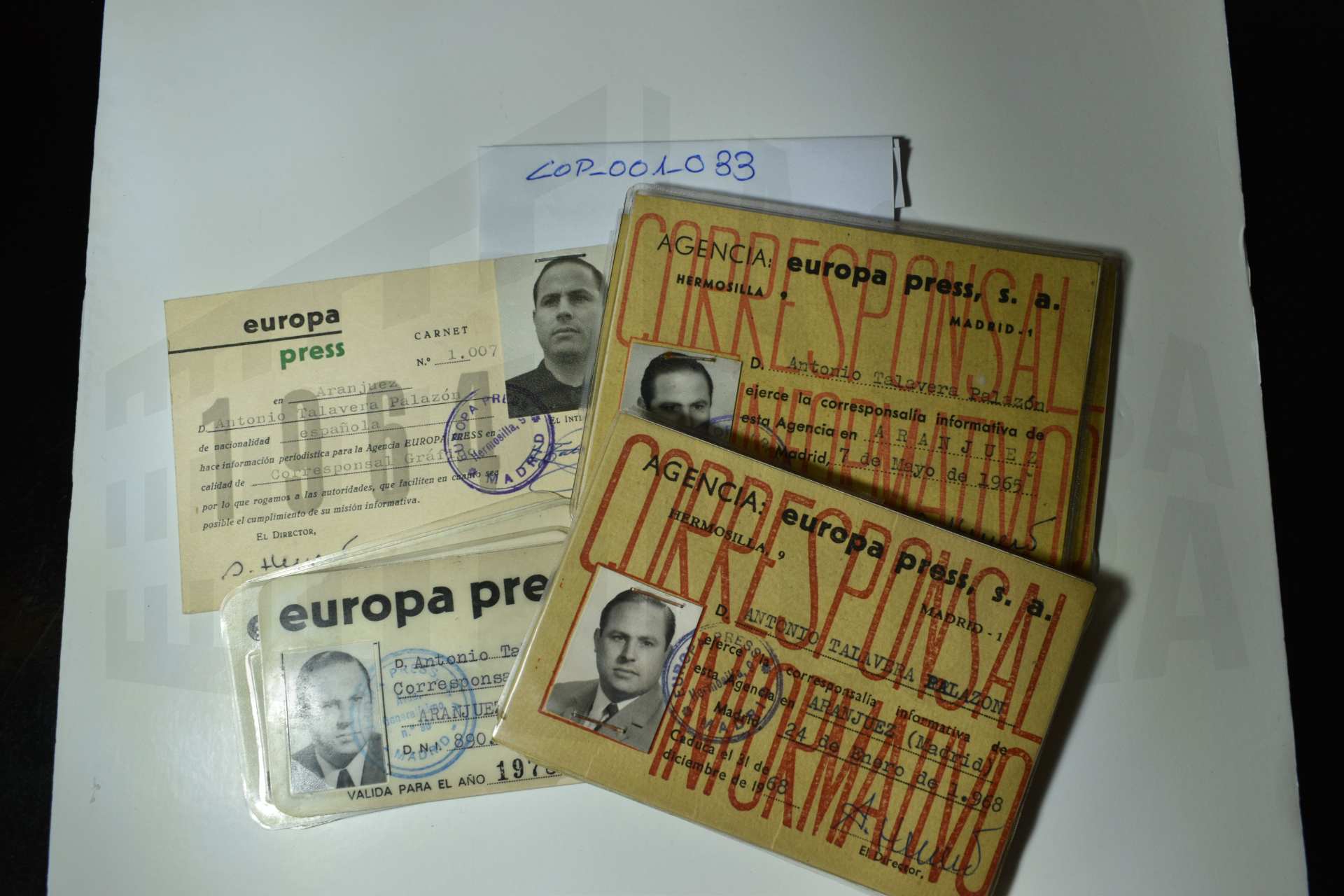Credenciales de reportero gráfico de Europa Press con fotografía en cada uno