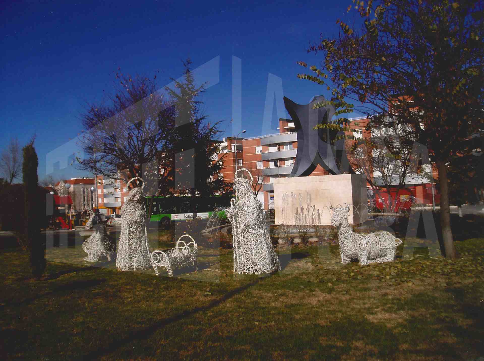 Don Quijote y Sancho Panza junto a un Belén en la Plaza de la Constitución de Aranjuez