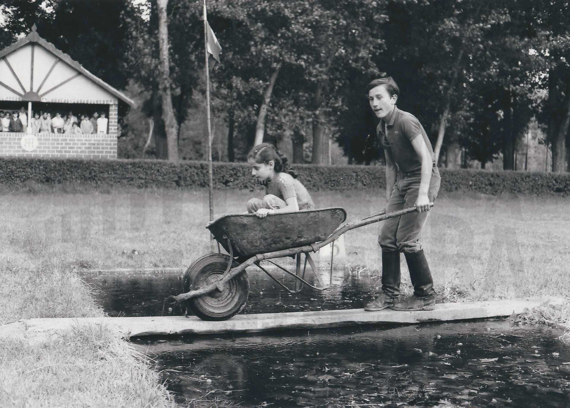 Dos jóvenes participando en uno de los juegos de una gincana en la Real Sociedad Hípica de Aranjuez