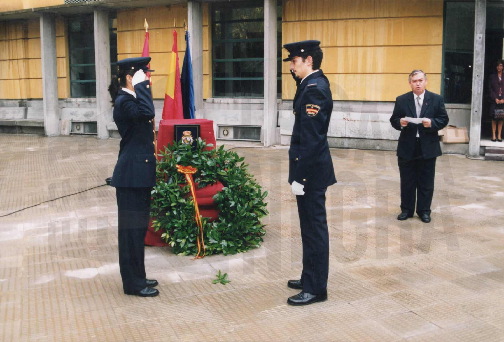 Reverso: "FIESTA DE LA POLICIA NACIONAL CORONA DE LAUREL 02 OCT 2003"