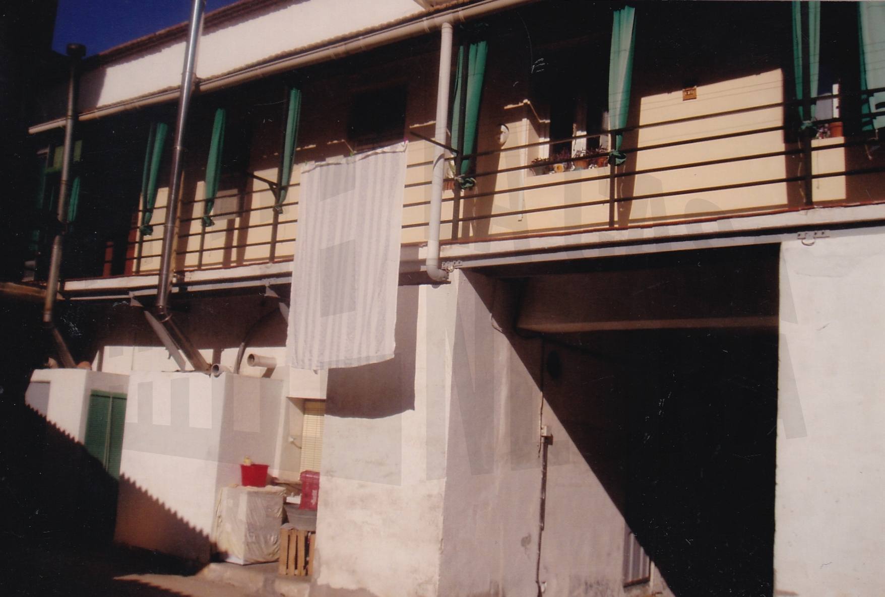 Edificio en la Calle San Pascual de Aranjuez con puerta de entrada a una corrala y un herbolario