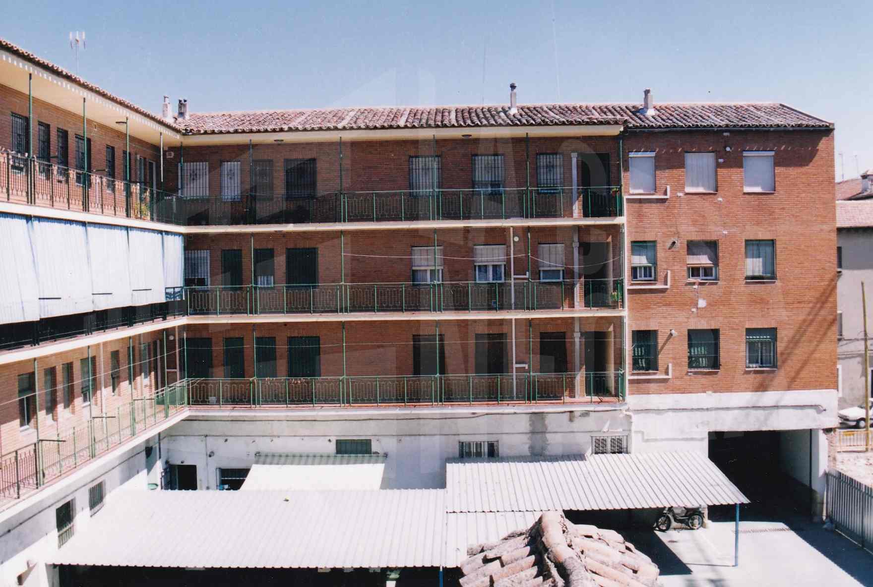 Edificio en la esquina de las calles Florida y Calandria en Aranjuez con la puerta de entrada a una corrala