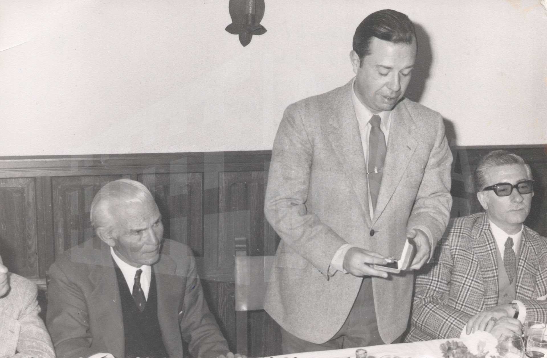 El Alcalde de Aranjuez, Antonio Clavet Fernández-Victorio, entrega el Fresón de oro al torero Domingo Ortega en el Restaurante Casa Pablo