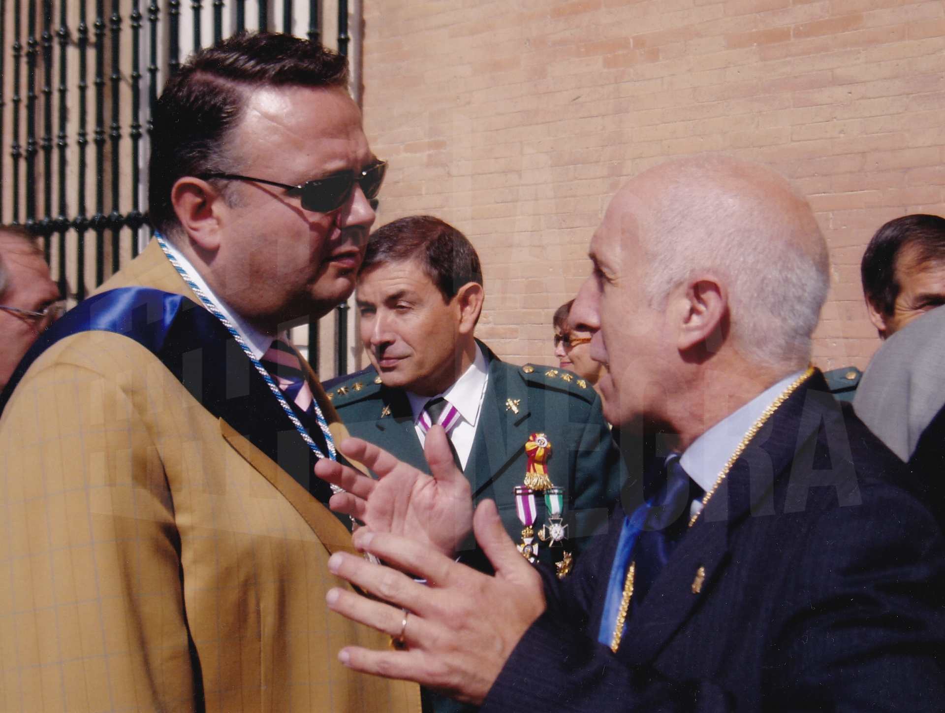 Reverso: " FIESTA DE LA POLICIA NACIONAL BODAS DE PLATA DE LA POLICIA NACIONAL EN ARANJUEZ JUEZA ALCALDE DE ARNJUEZ, JESUS DIONISIO COMISARIO DE POLICIA, JULIO LAGUNA 02 OCT 2003"