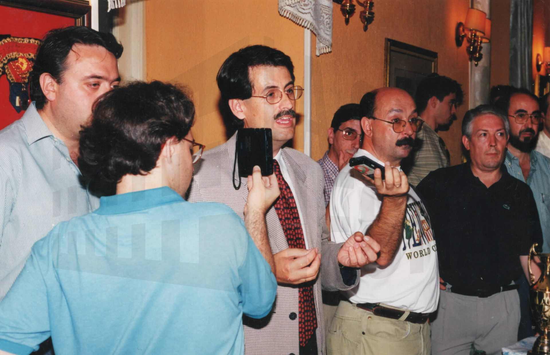 Reverso: "CONCEJAL DE DEPORTES VICTOR MARTINEZ CON ALCALDE - JOSE MARIA CEPEDA 0 JUL. 1998"