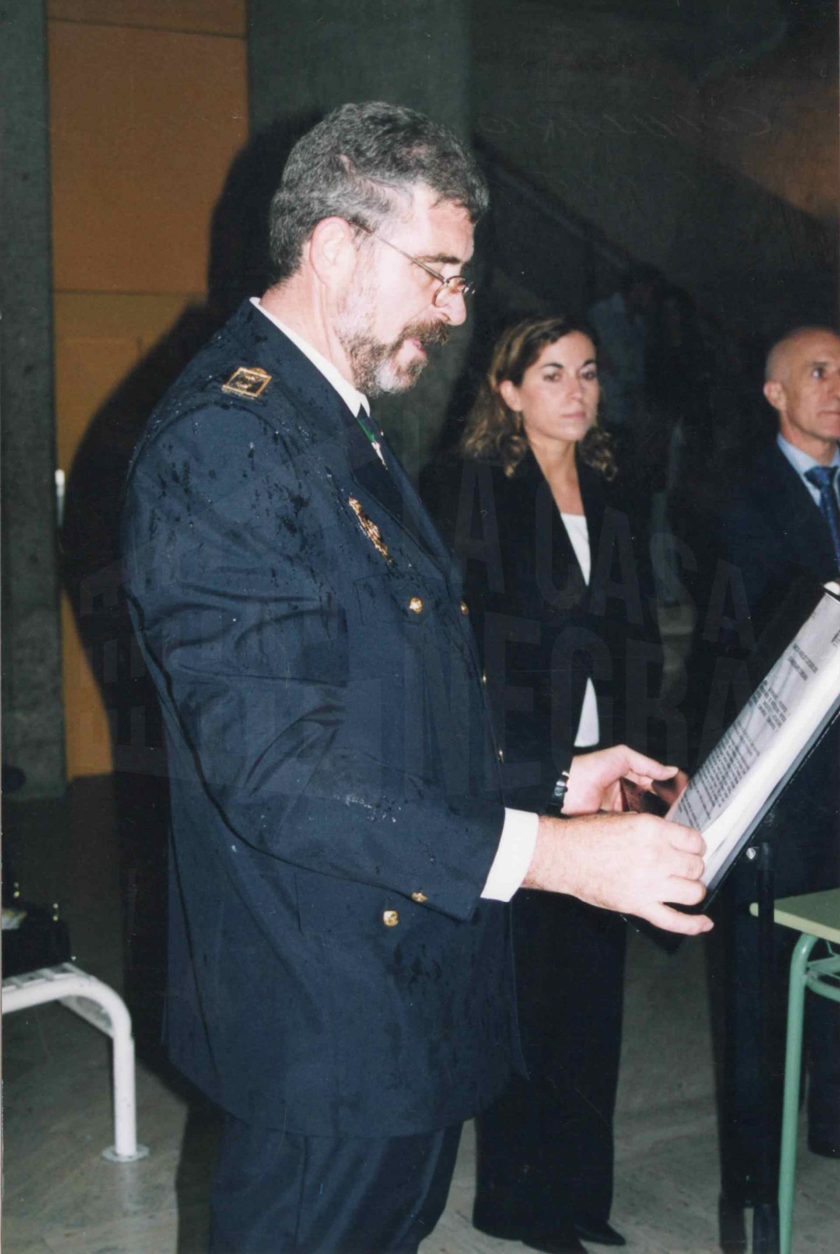 Reverso: "FIESTA DE LA POLICIA NACIONAL DELEGADO DE PATRIMONIO JAVIER TRUEBA Y DUQUE DE FERNAN NUÑEZ 02 OCT 2003"