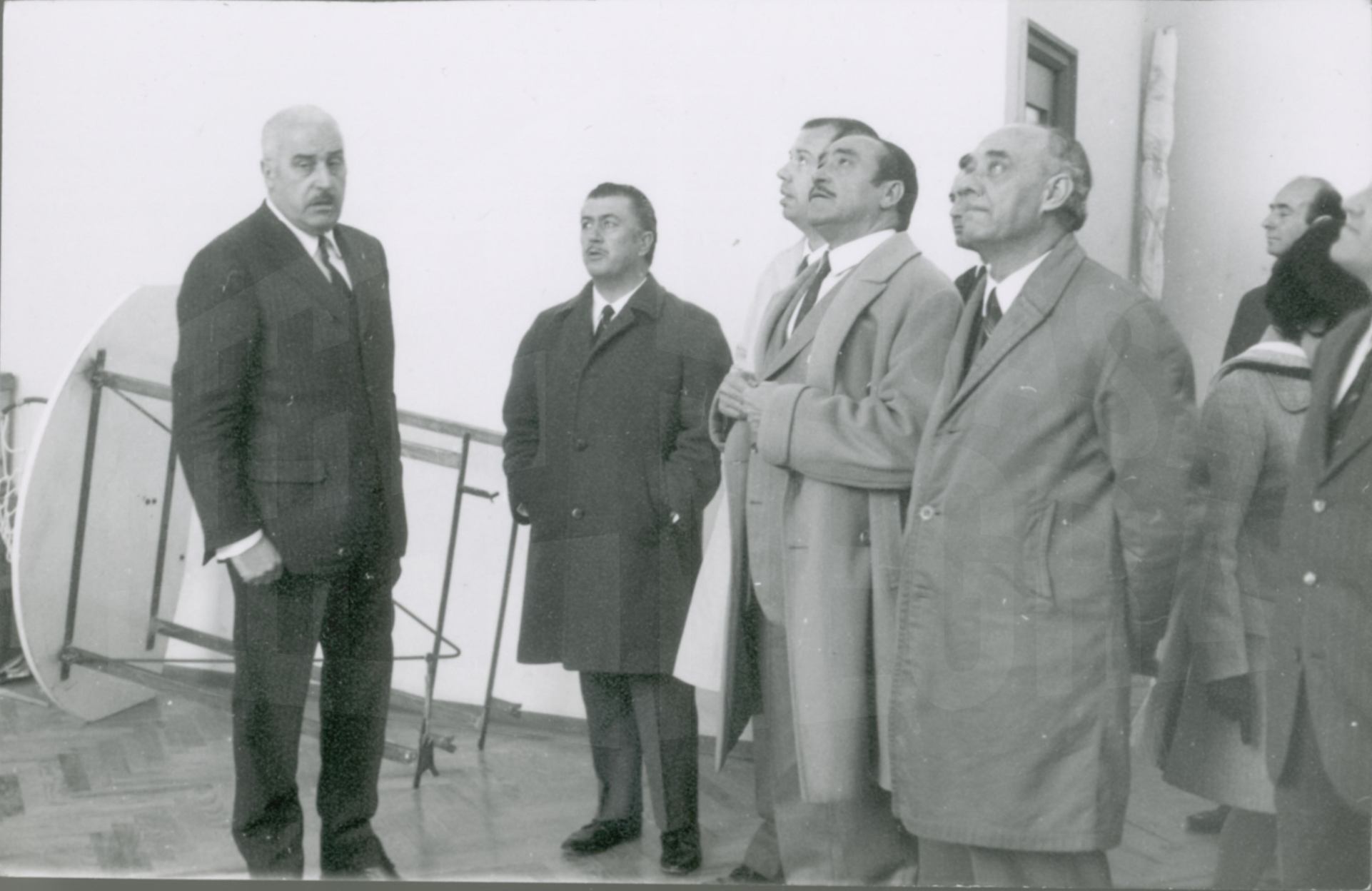 El Gobernador Civil de Madrid, Jesús López-Cancio, junto al Alcalde de Aranjuez, Manuel García Moreno, y a otras personas en su visita al Asilo de San Isidro en Aranjuez
