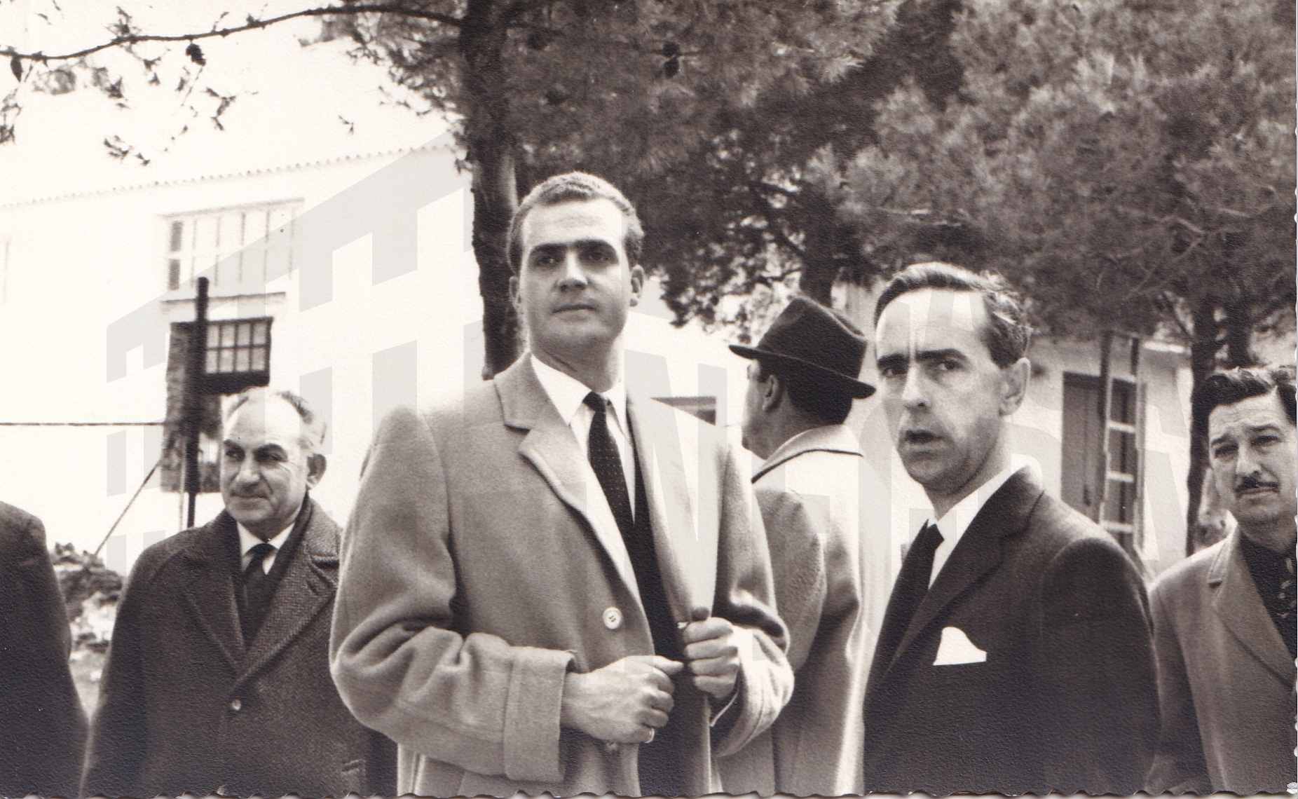 El Príncipe Juan Carlos de Borbón saluda a varias personas durante su visita a la fábrica de MAFE en Aranjuez