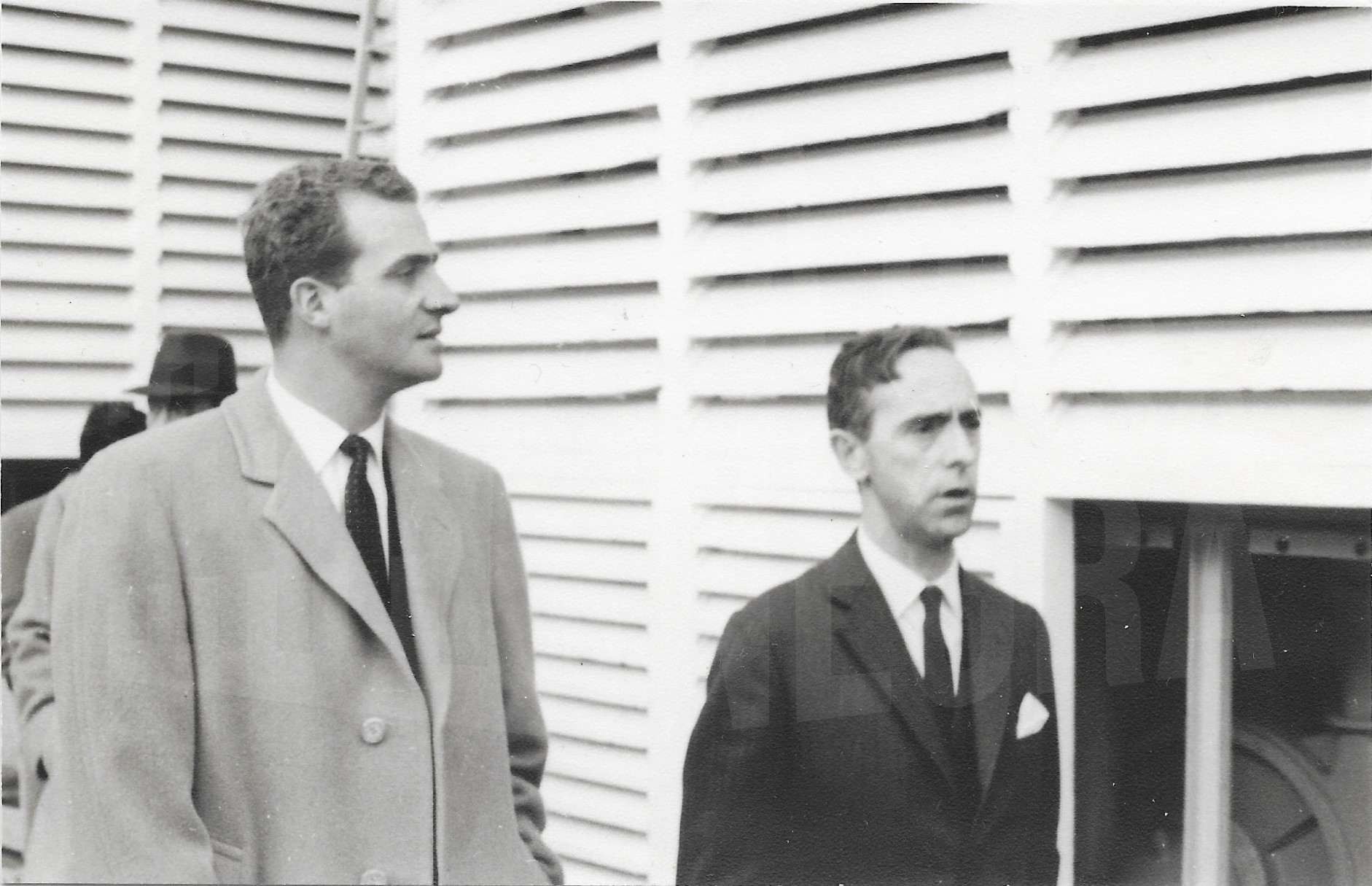 El príncipe Juan Carlos y otra persona durante la visita oficial a la fábrica de MAFE (Manufacturas Fotográficas Españolas) en Aranjuez