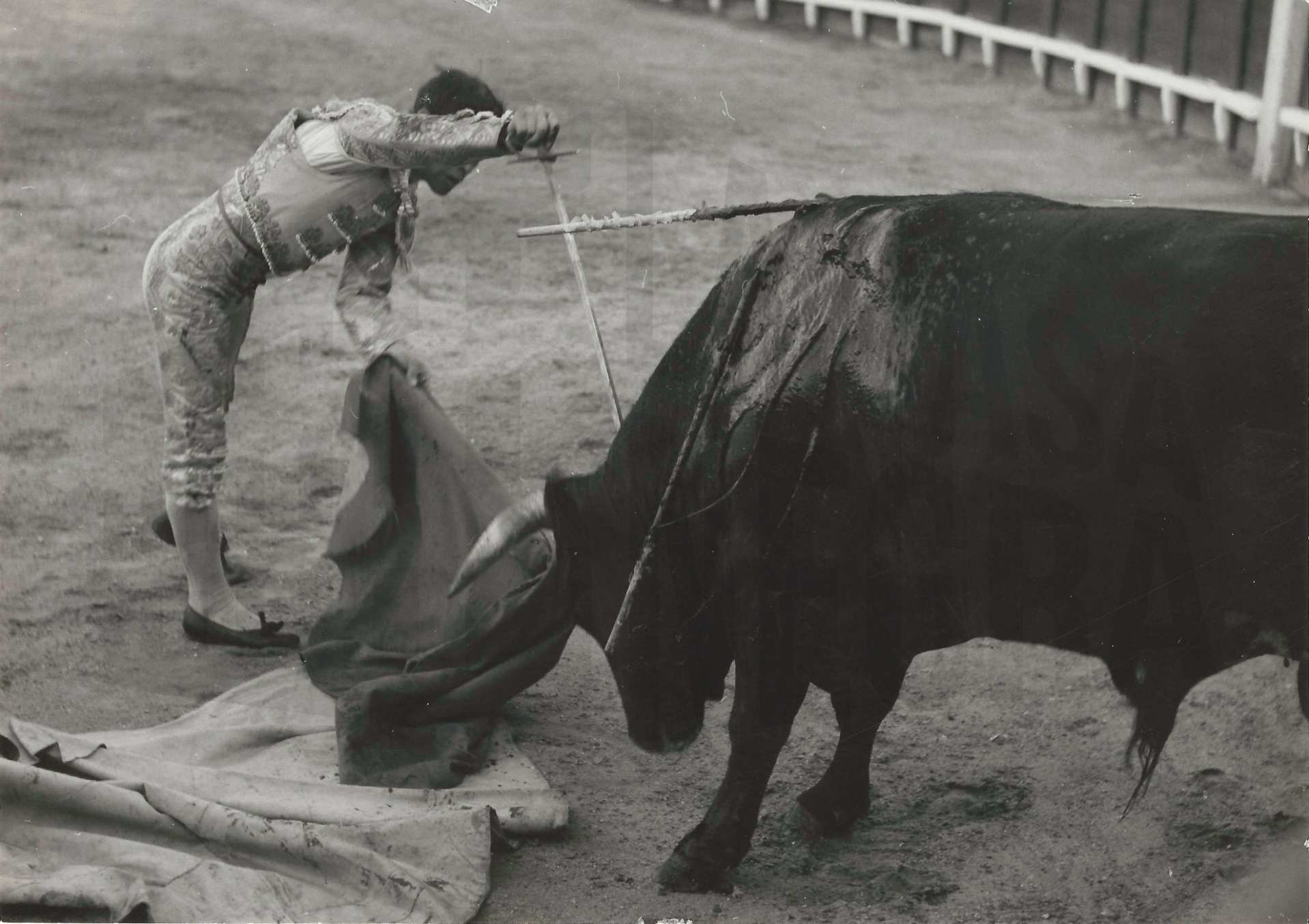 Reverso: "PLAZA DE ARANJUEZ PALOMO LINARES EN UN ENTRENAMIENTO A PUERTA CERRADA 1965-66"