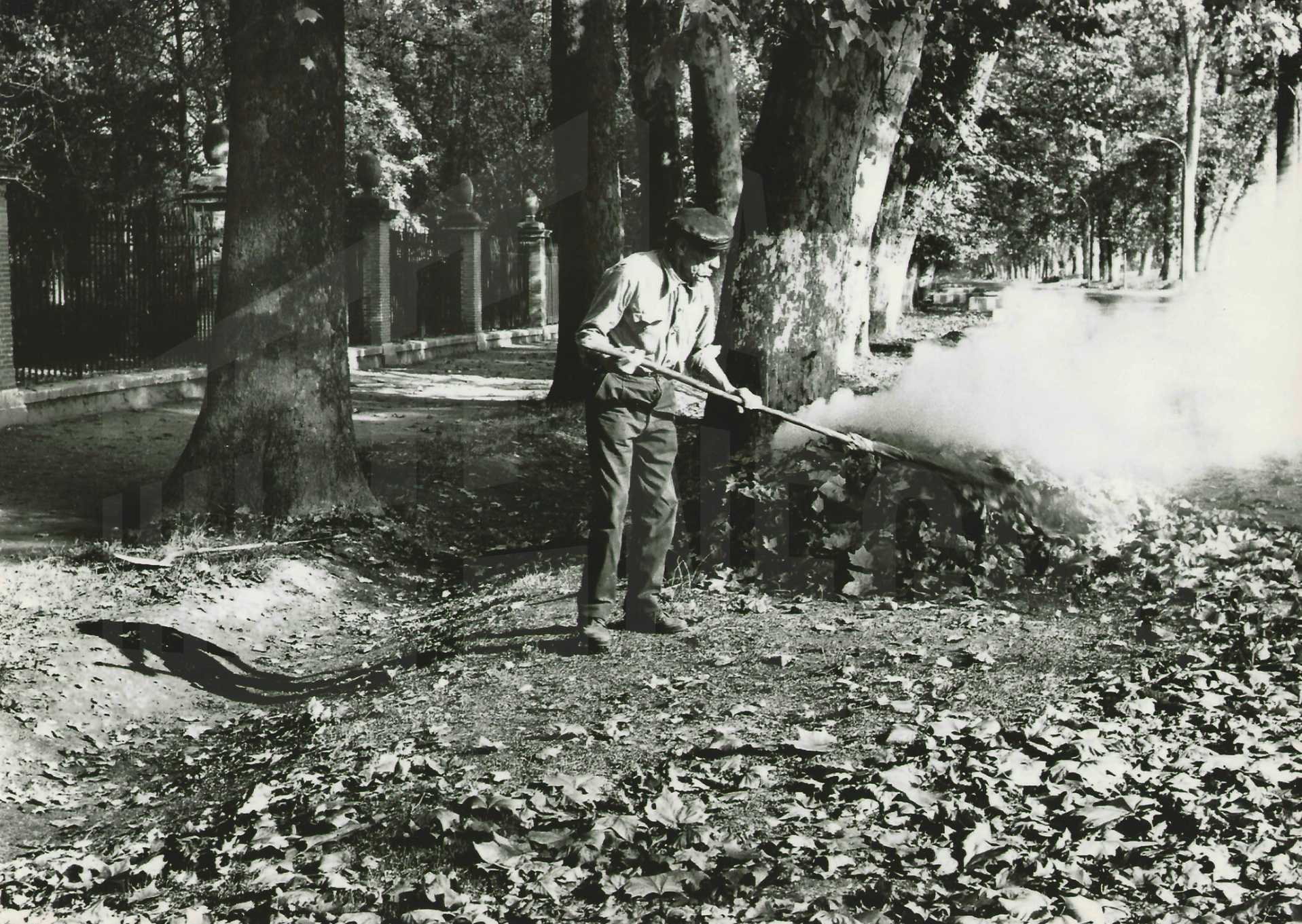 El trabajador de la limpieza de Aranjuez, Sr. Carrasquilla, encendiéndose un cigarrillo