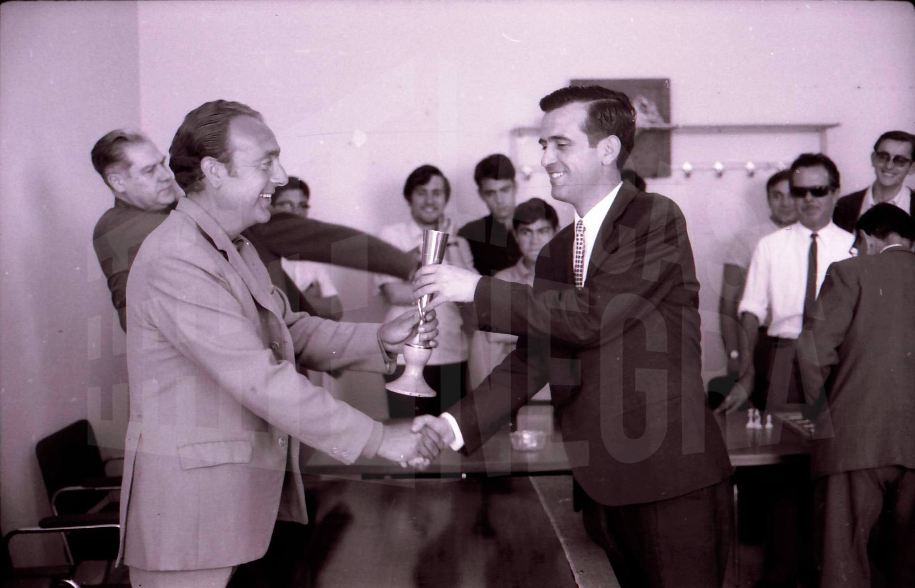 Entrega de trofeos al ganador de unas partidas simultáneas de ajedrez en Aranjuez