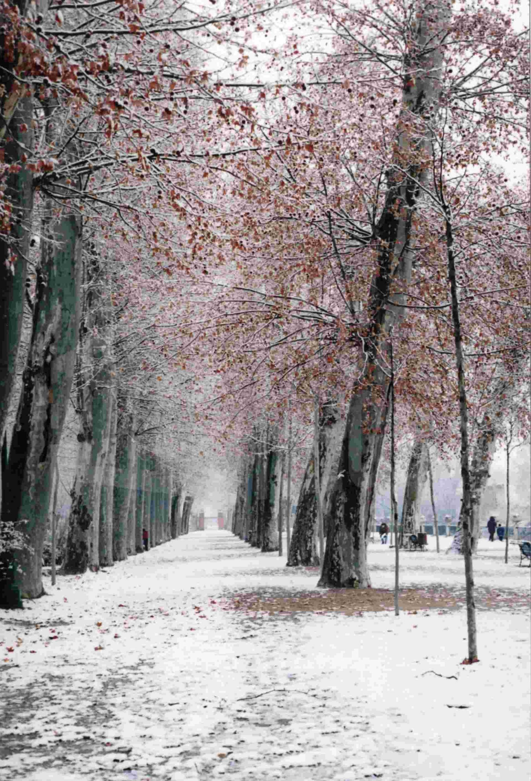 Glorieta de Santiago Rusiñol y Jardín del Parterre en Aranjuez tras una nevada