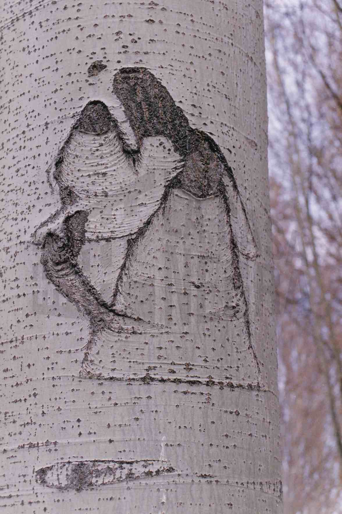 Grietas y cicatriz por una rama cortada en el tronco de un chopo
