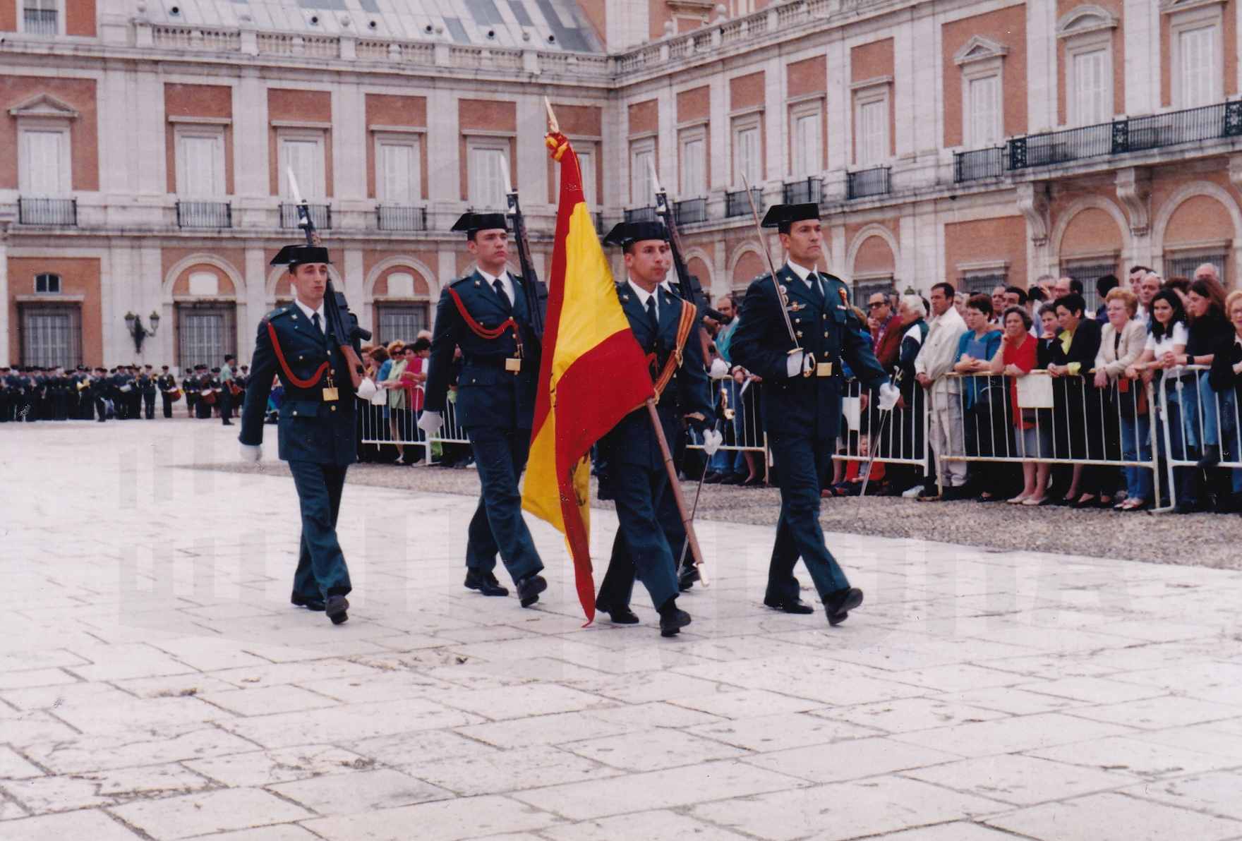 Sé el primero en valorar “Guardias civiles desfilando con la bandera, durante el acto de despedida a los tenientes cadetes en Aranjuez”