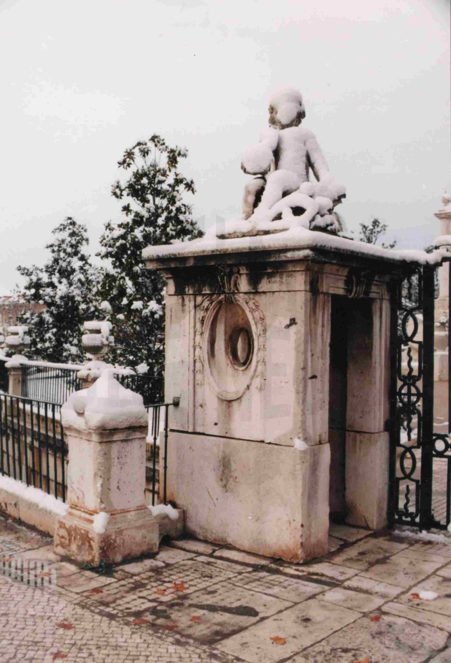 Jardín del Parterre y Palacio Real en Aranjuez tras una nevada