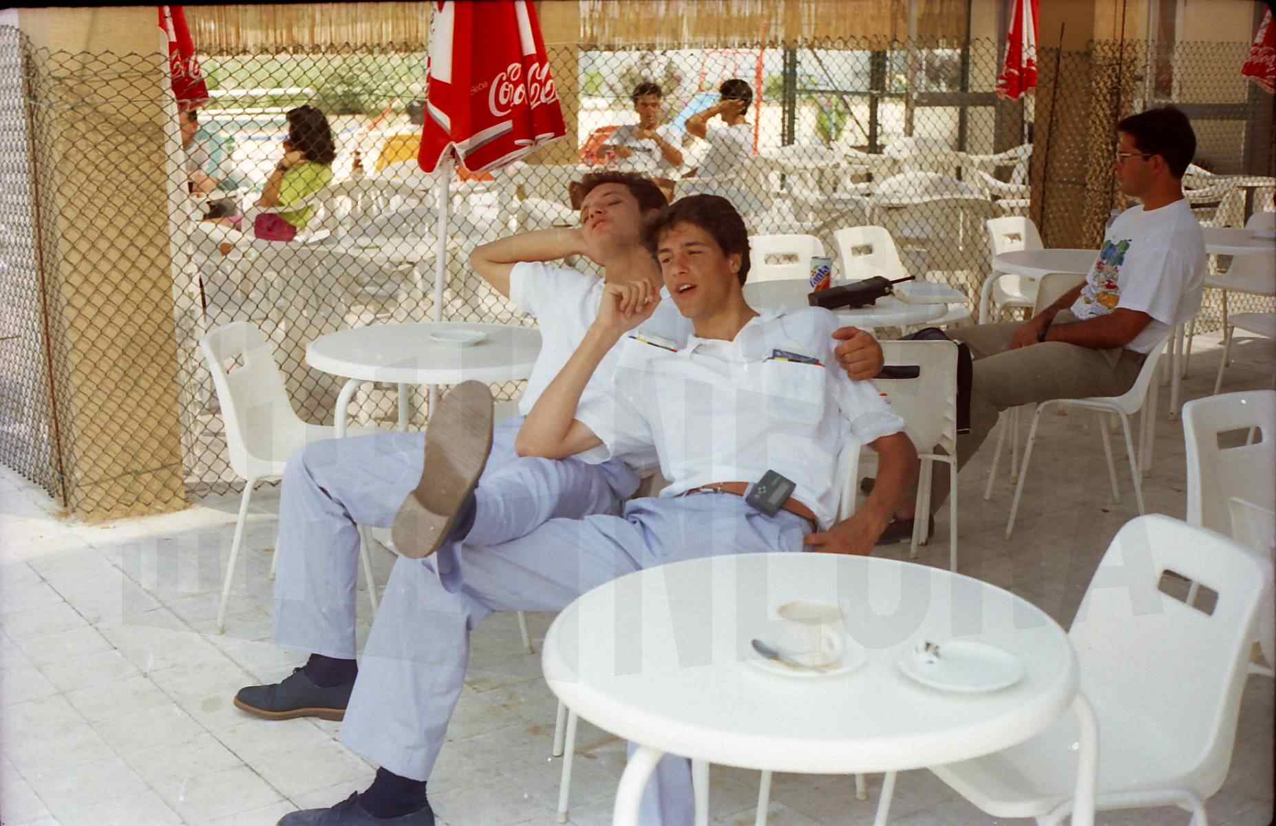 Jóvenes en la cafetería en la sede de las pruebas de Pentatlon moderno de los Juegos Olímpicos de 1992