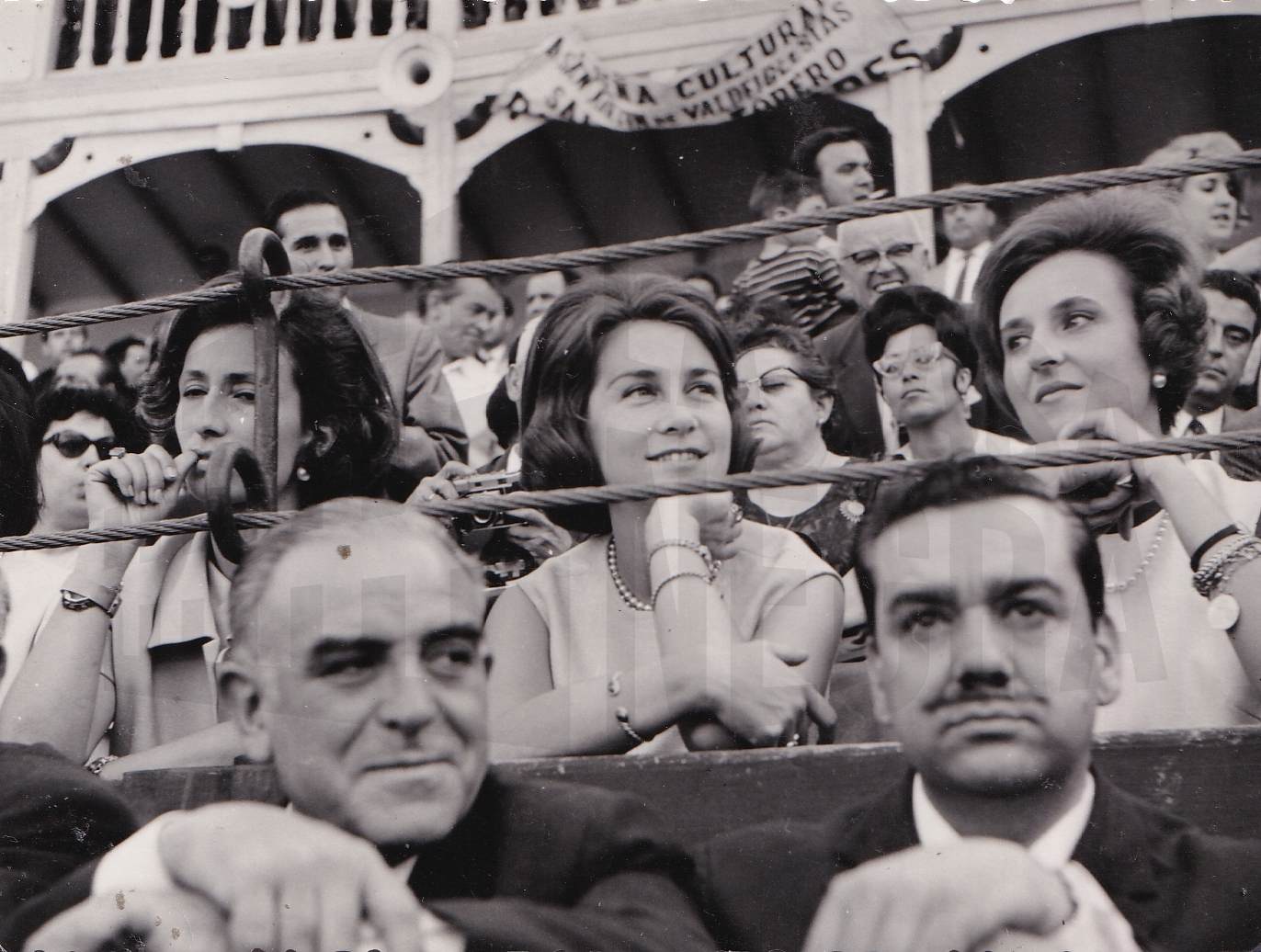 La Princesa Sofía y la Infanta Pilar de Borbón entre el público durante una corrida en la Plaza de Toros de Aranjuez