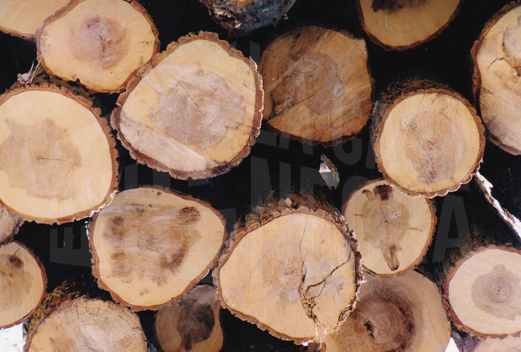 Líneas negras formando figuras en la sección del tronco de un árbol