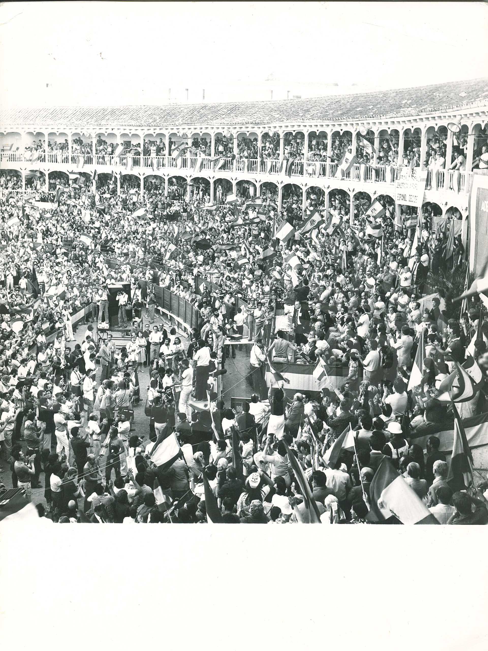 Mitin de Blas Piñar en la Plaza de Toros de Aranjuez, convocado por Fuerza Nueva
