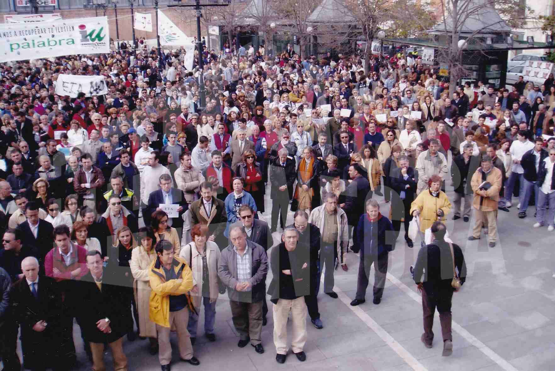 Numerosas personas concentradas en la Plaza de la Constitución de Aranjuez como protesta del atentado en los trenes de Atocha