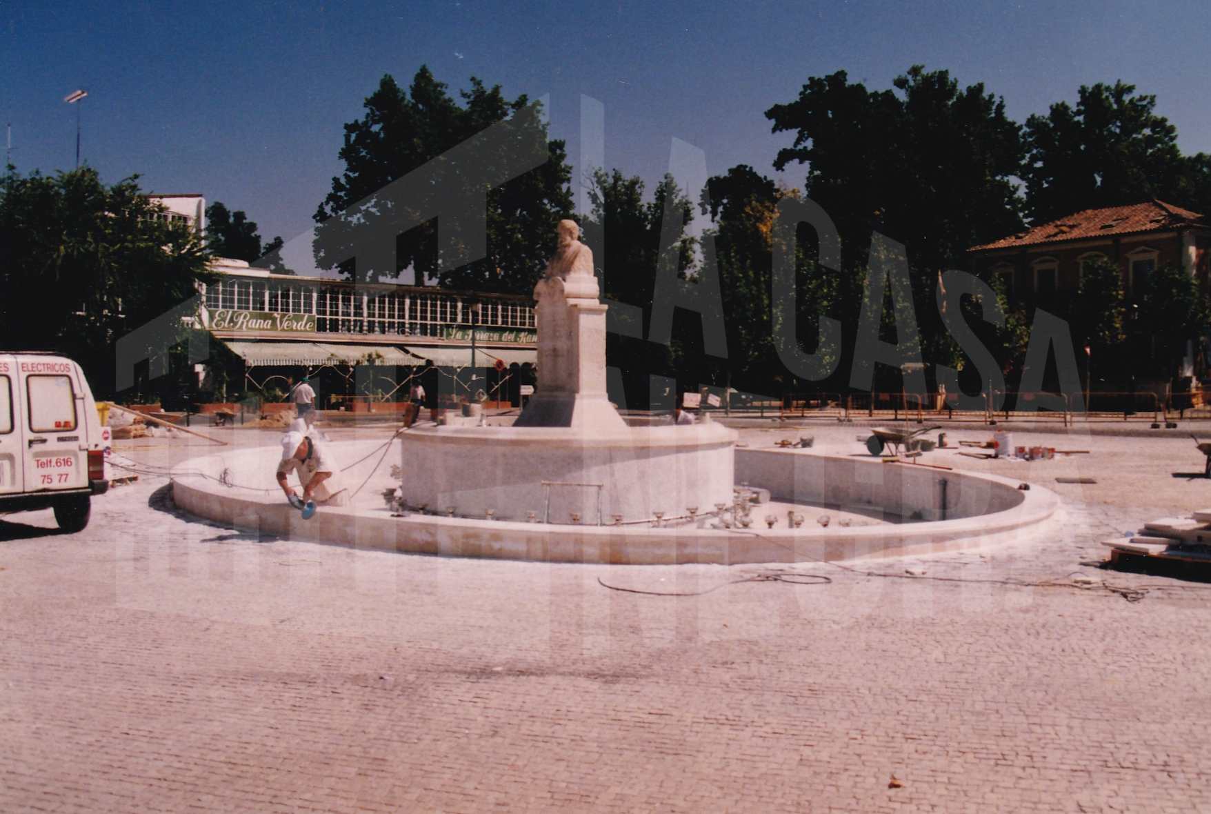 Obras de construcción de la fuente en la Plaza de Santiago Rusiñol en Aranjuez