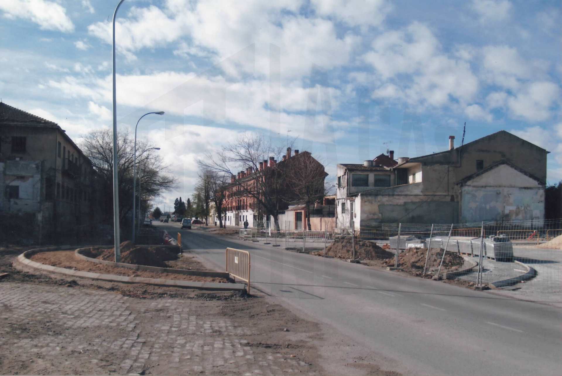Obras de construcción de la Glorieta de Robert Bosch y edificios de la antigua Azucarera en Aranjuez