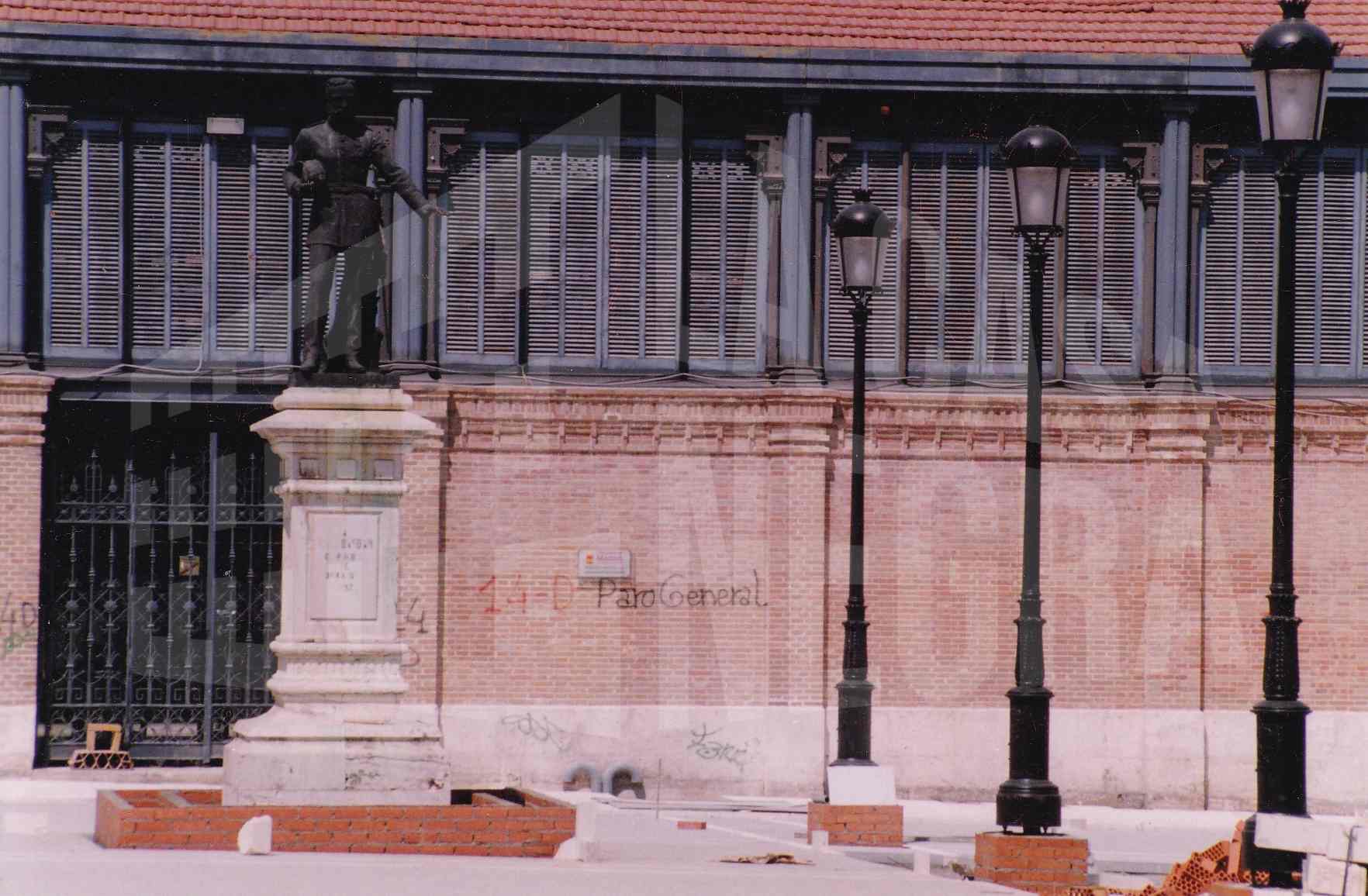 Obras de reforma en la Plaza de la Constitución de Aranjuez y estatua de Alfonso XII