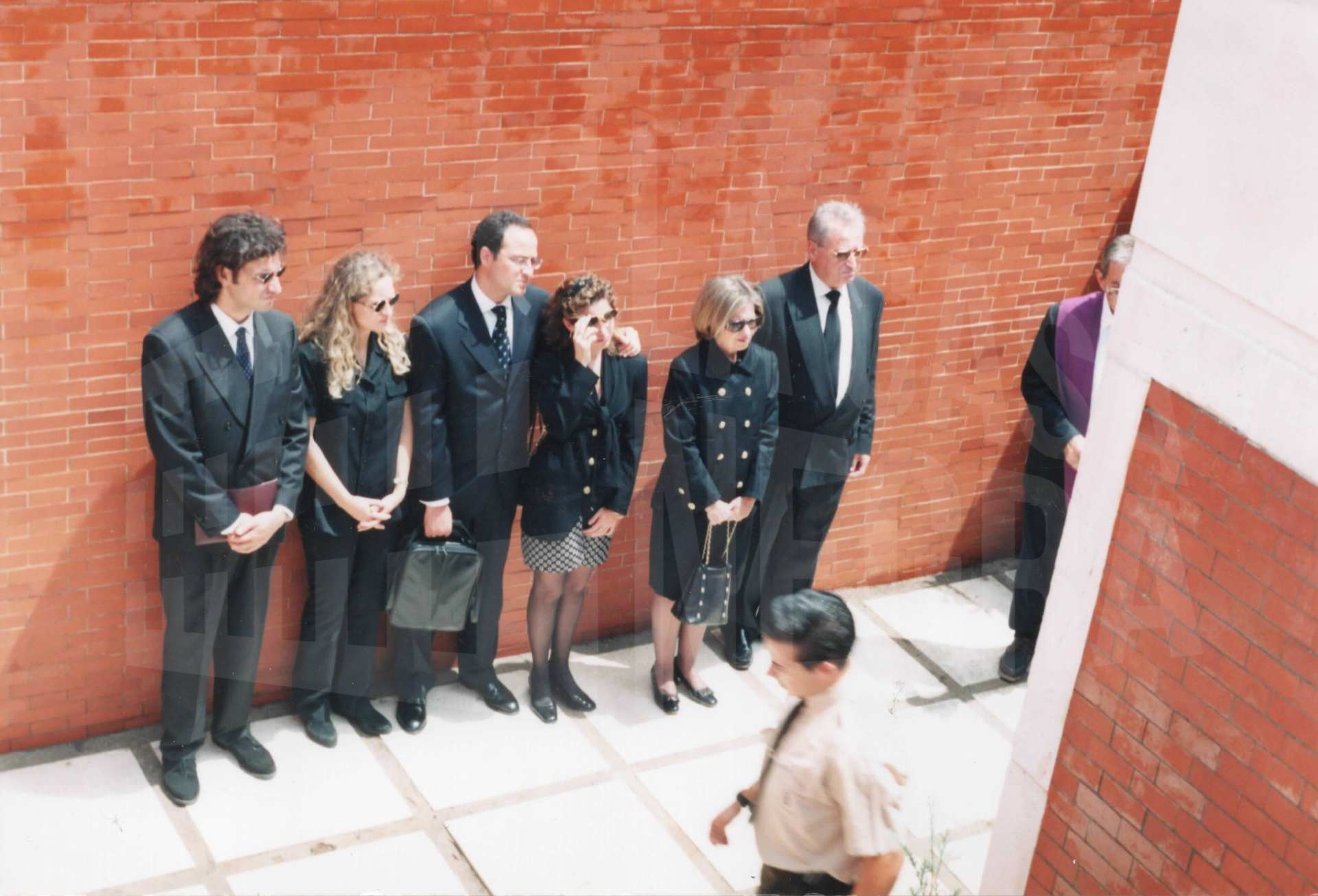 Operarios introducen el féretro de Victoria Kamhi en el panteón familiar en el Cementerio de Santa Isabel en Aranjuez