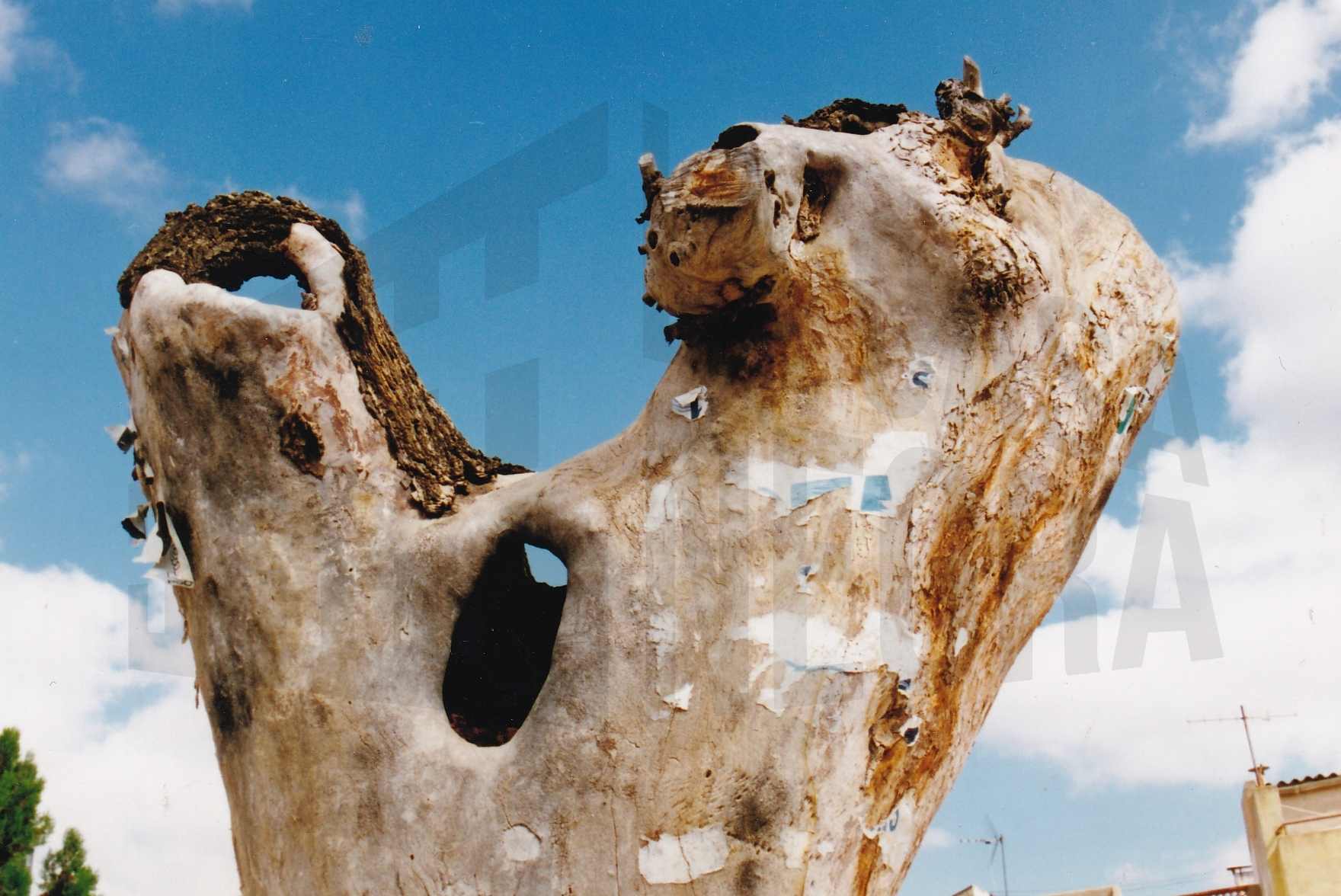 Parte del tronco de un árbol tirado en el campo