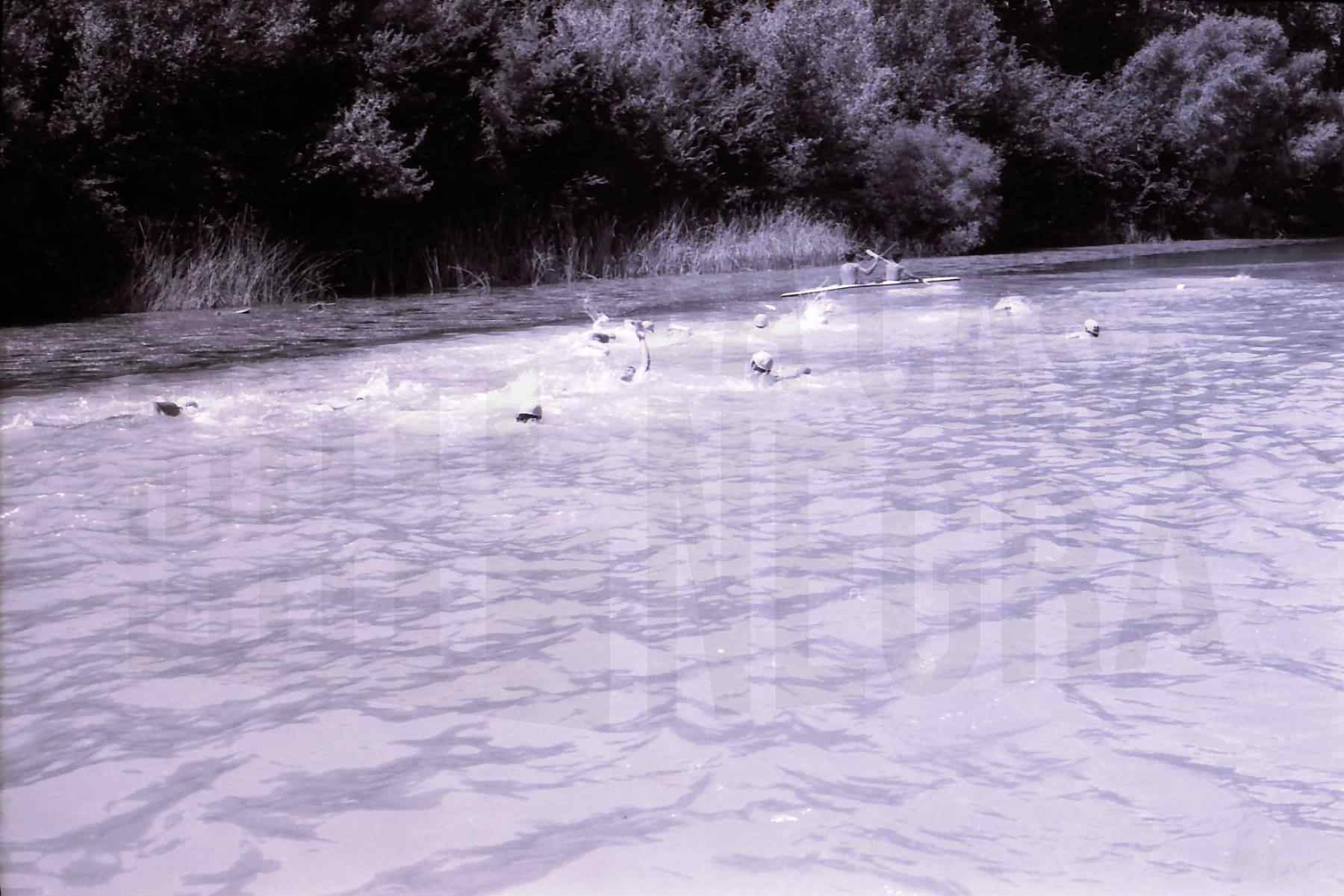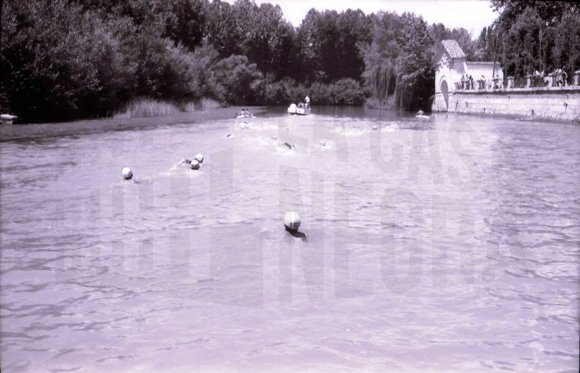 Participantes en la 1ª Travesía del Tajo en la línea de salida en Aranjuez