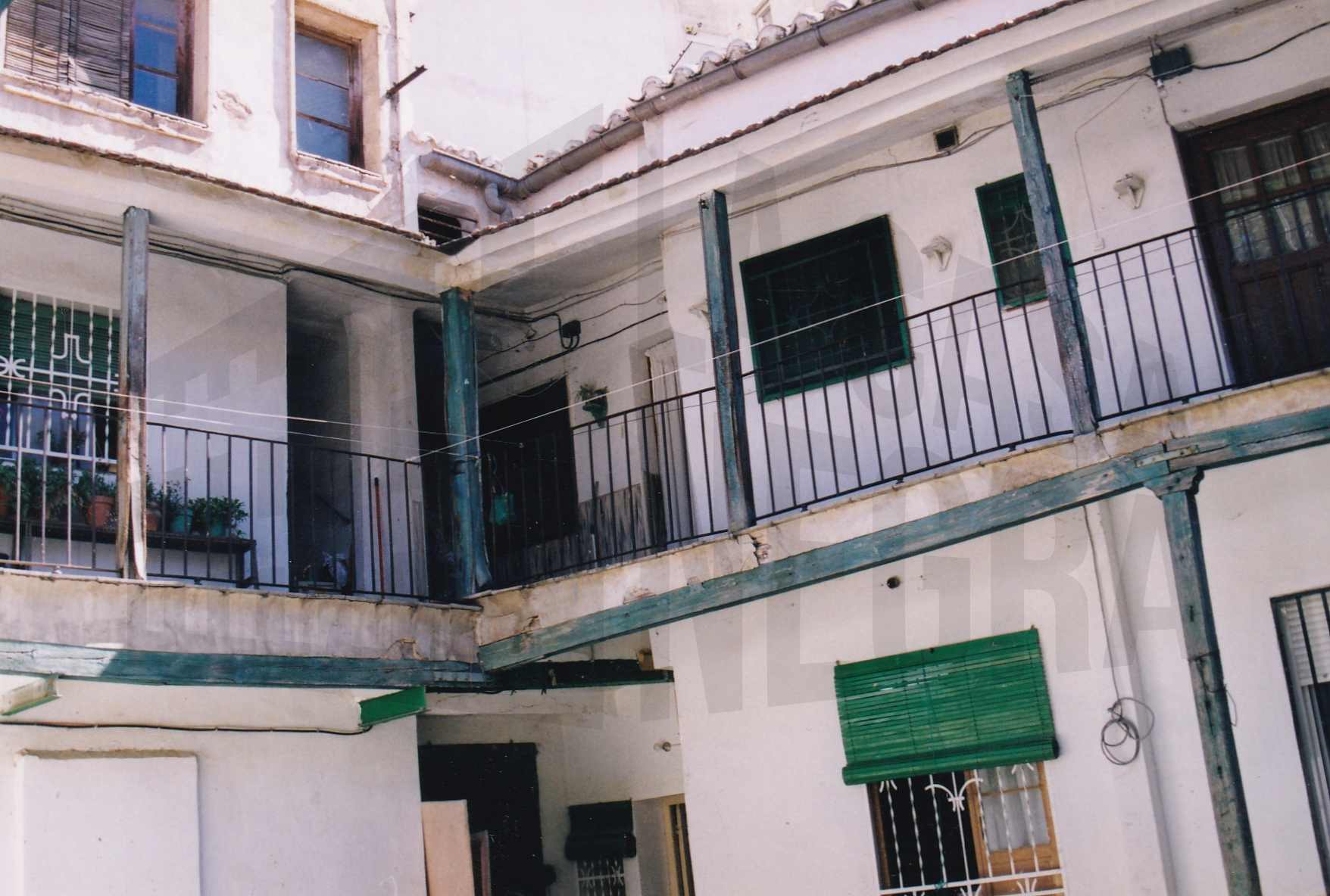 Patio y corredor de una corrala en la Calle Stuart en Aranjuez