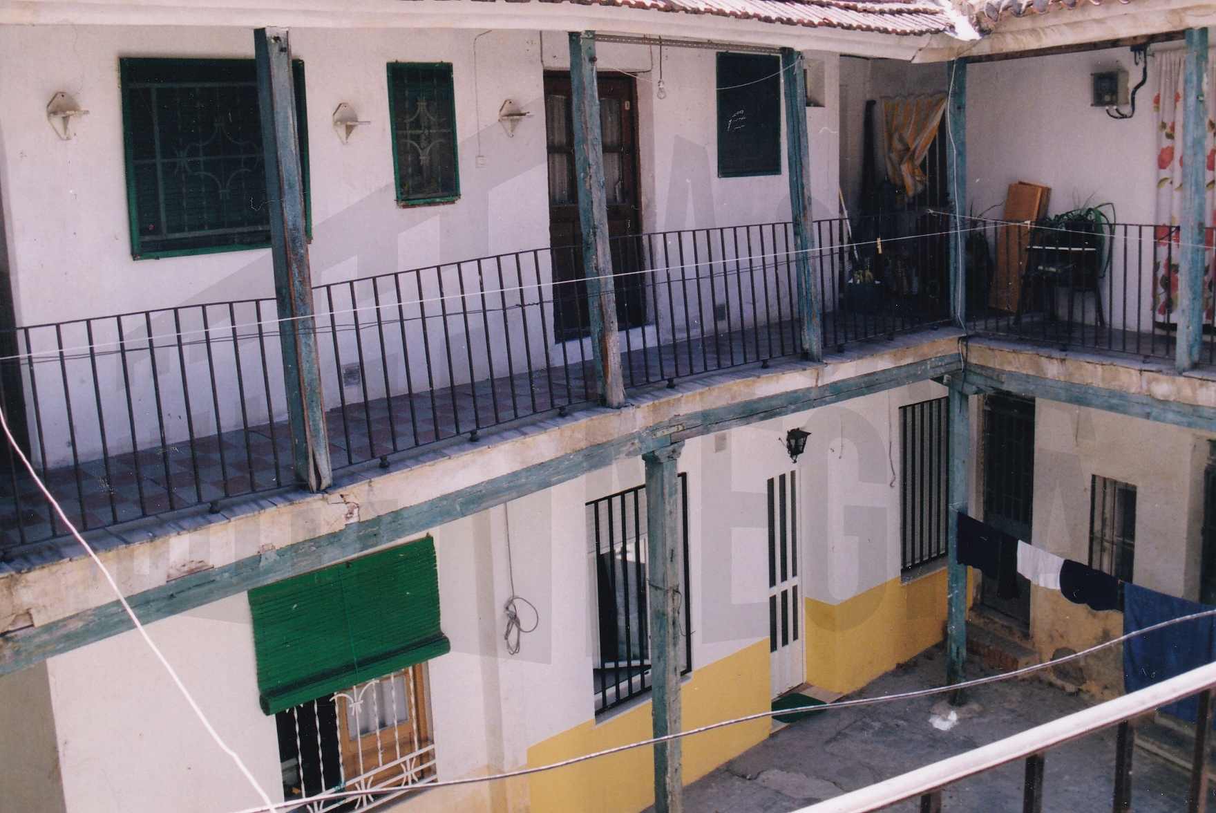 Patio y corredor de una corrala en la Calle Stuart en Aranjuez
