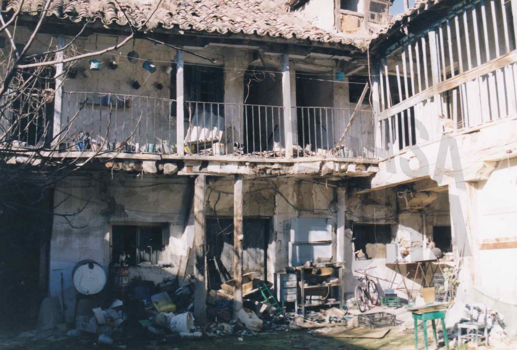Patio y corredores en una corrala en estado ruinoso en un edificio ya desaparecido en la Carrera de Andalucía en Aranjuez