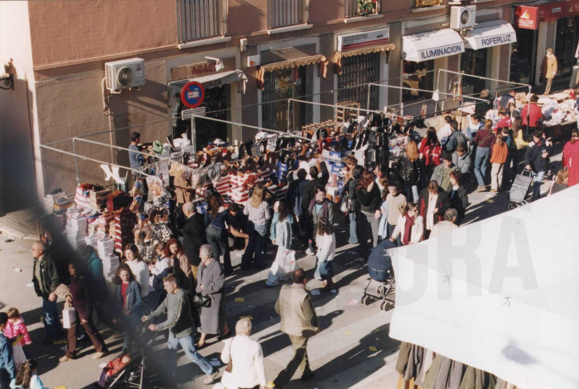 Plano aéreo de un puesto de decoración en el Rastro de Aranjuez